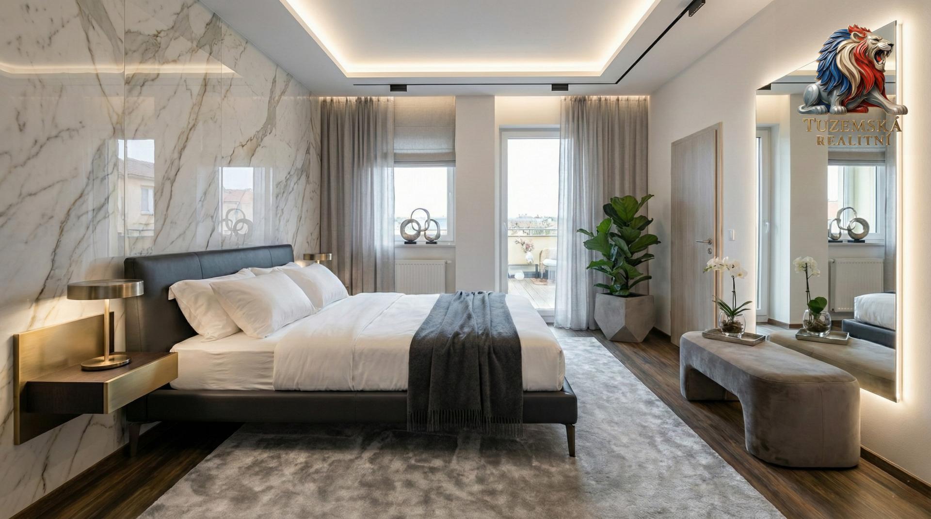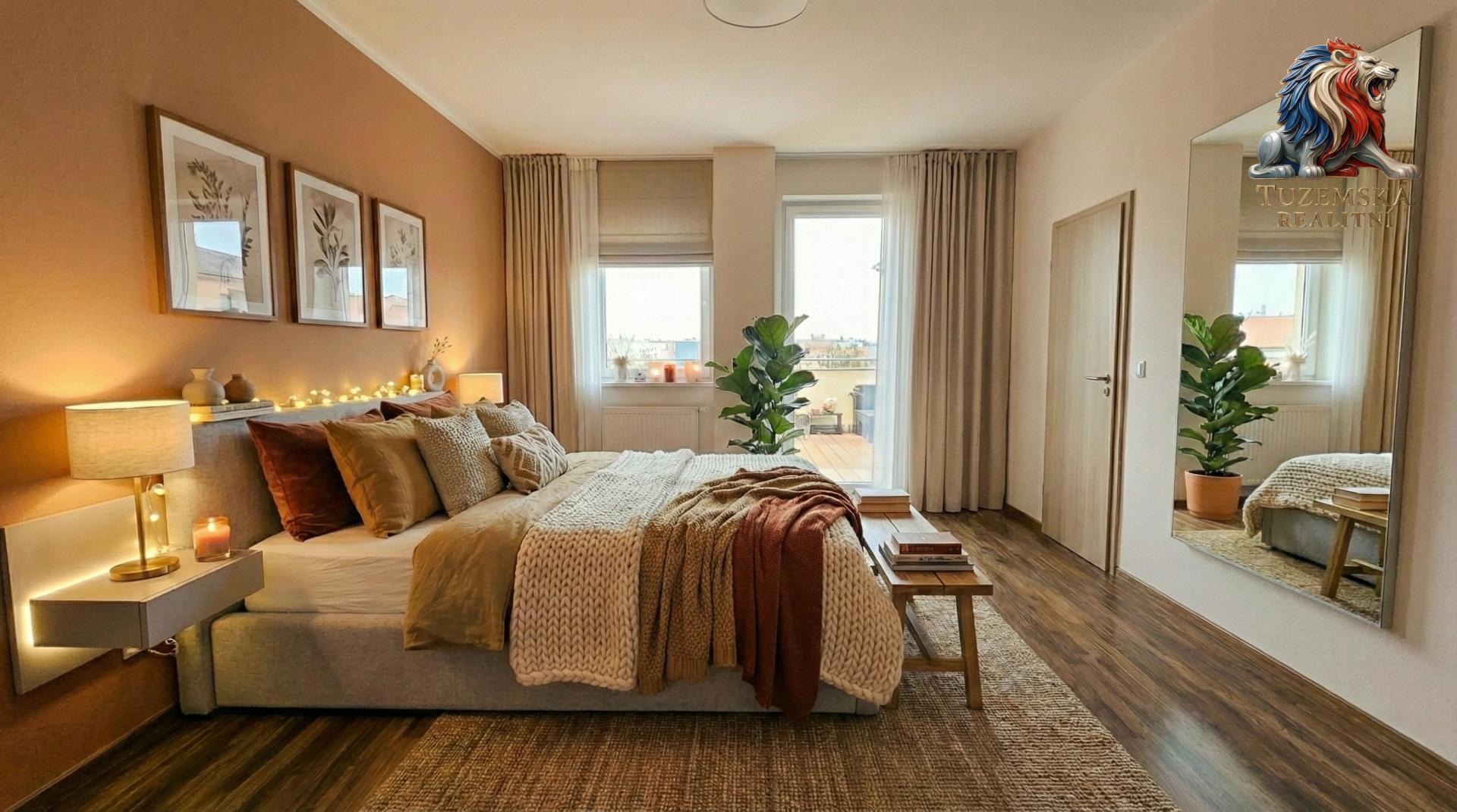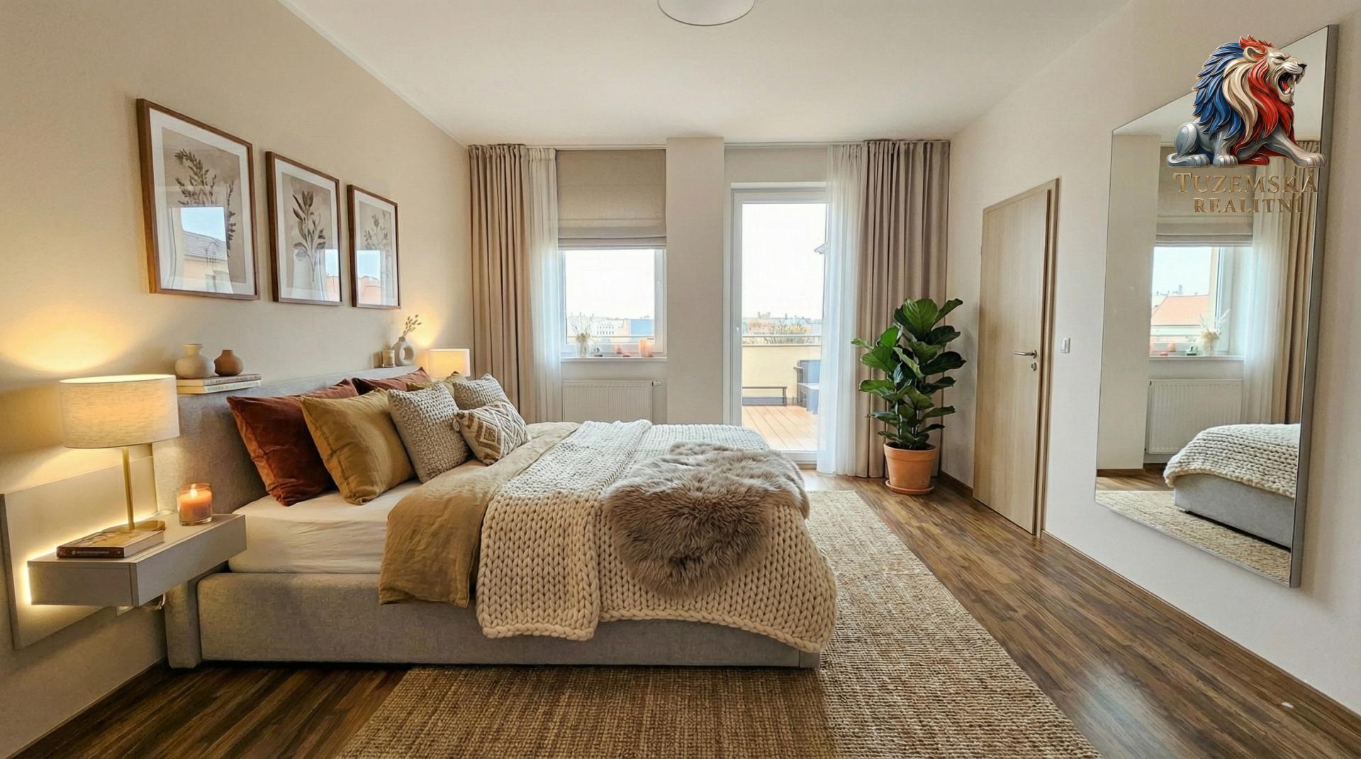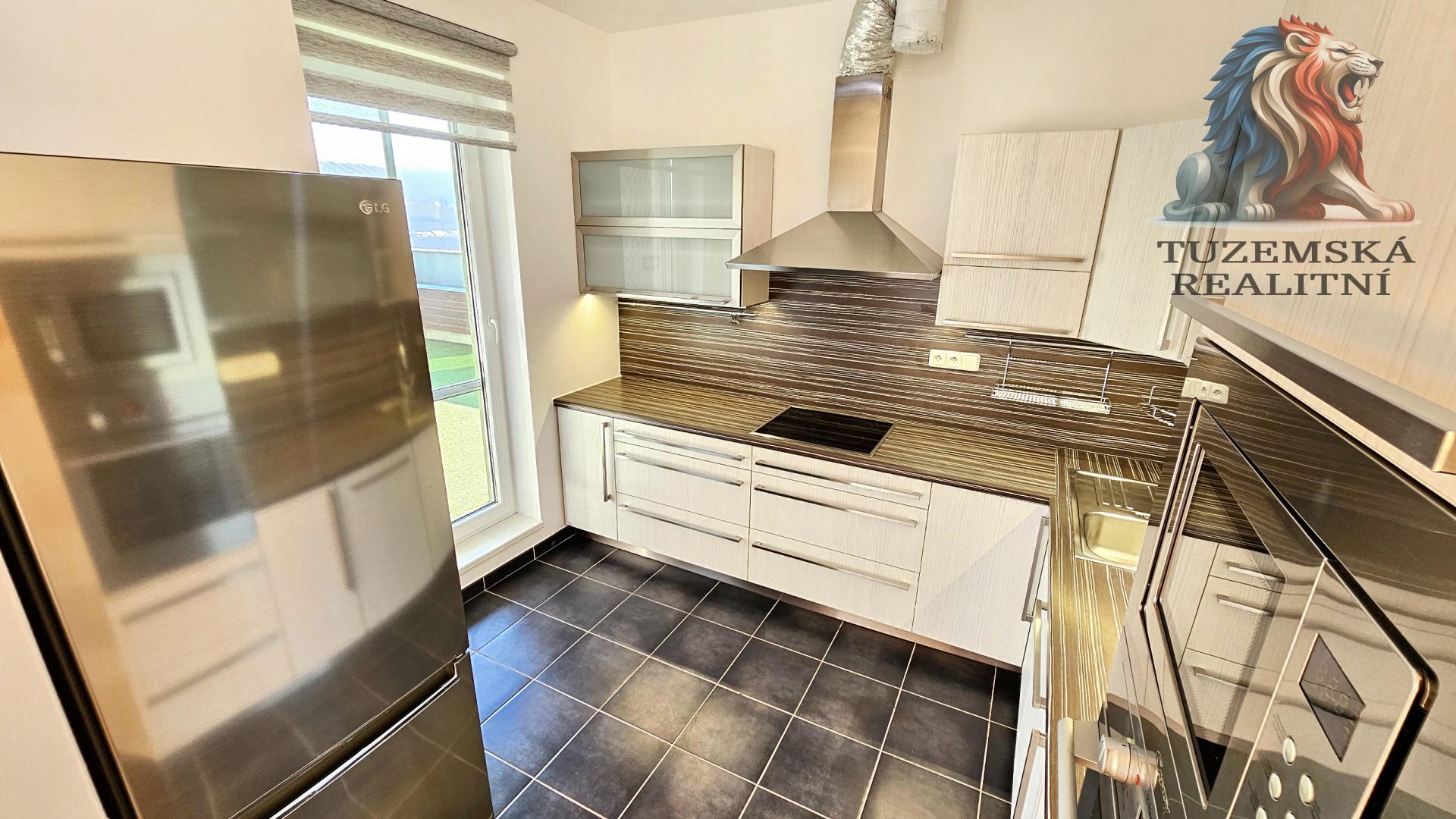 Prostorný byt 4+kk o 99m2 s 2WC, garážovým stáním, terasou 30m2 s výhledem na Šternberk.