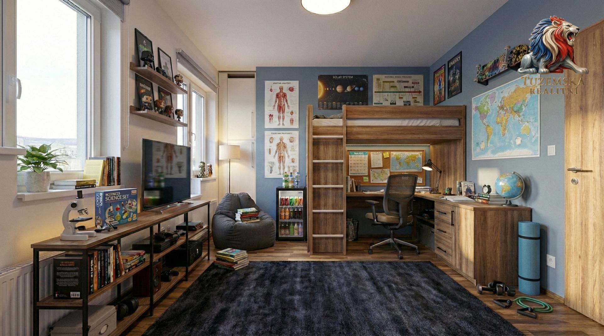 Chodba 9,54m2, obývací pokoj 28,49m2, kuchyňský kout 7,83m2, ložnice 16,72m2, dětský pokoj 13,56m2, druhý dětský pokoj 12,64m2, koupelna s WC 7,47m2, samostatné WC 2,23m2.