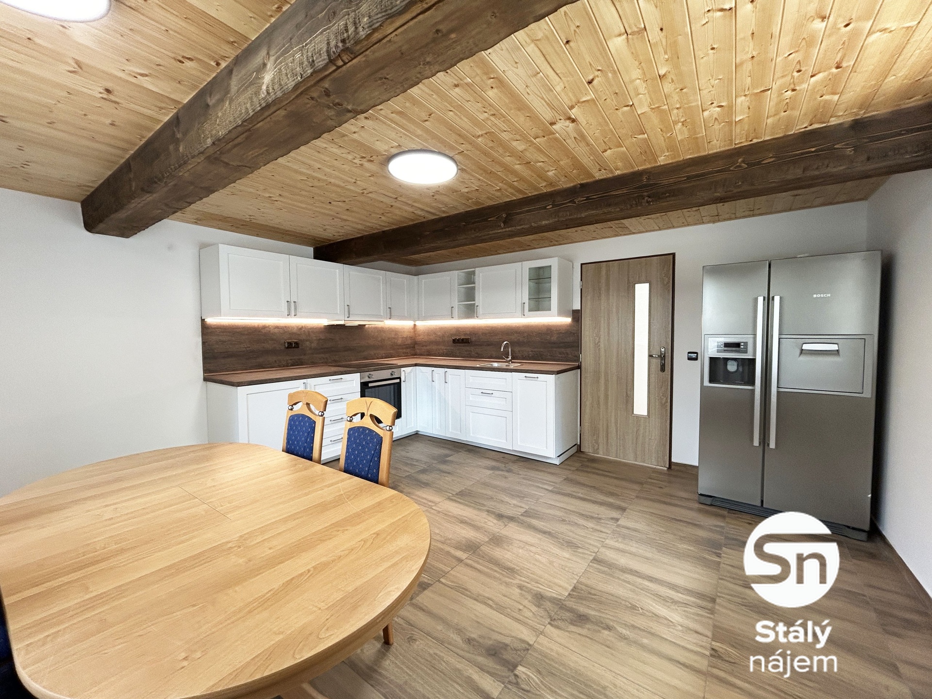 Interiér prošel zdařilou rekonstrukcí a je připraven k okamžitému užívání. Srdcem domova je kuchyně vybavená lednicí, troubou a jídelní sestavou, koupelna disponuje klasickou vanou. K dispozici je již zavedený internet přímo od majitele. Obrovským benefitem tohoto pronájmu je soukromá zahrada náležející k bytu, sklep pro uskladnění věcí a možnost parkování přímo na pozemku. Domácí mazlíčci jsou zde vítáni.