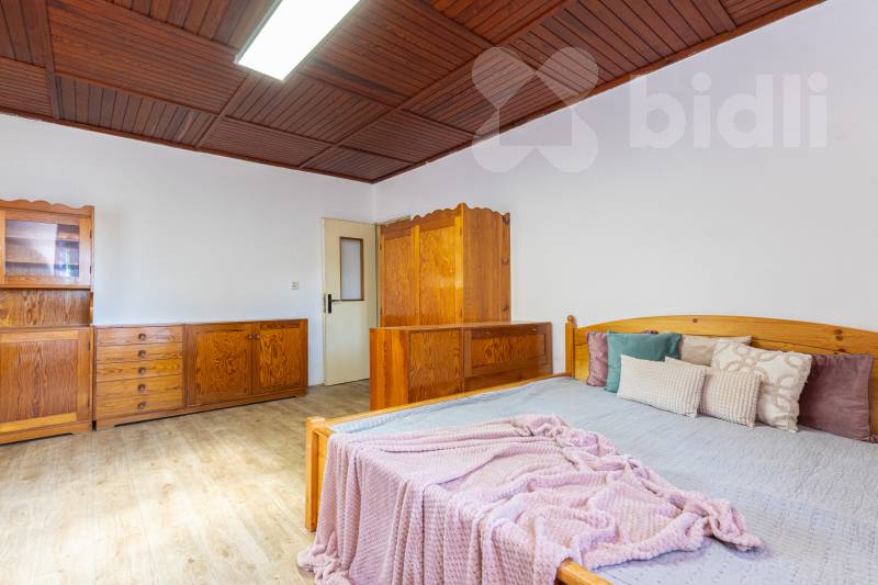 Tento samostatný dům o celkové podlahové ploše 226 m2 a o vnitřní dispozici 4+1 nabízí samostatnou kuchyni s jídelním koutem, obývací pokoj, 2 samostatné ložnice, dále kouzelnou verandu s posezením, koupelnu se sprchovým koutem a WC, sklep, zimní zahradu/venkovní kuchyni a kotelnu. Ze zahrady se vstupuje do bývalé truhlářské dílny, skladu a garáže.
