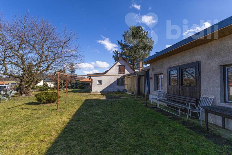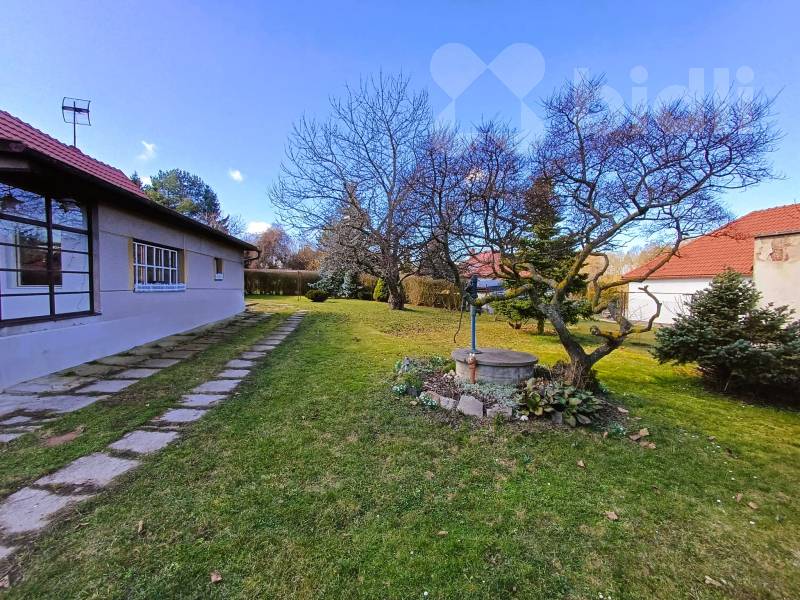 Krásná udržovaná zahrada s květinami a vzrostlými stromy (mj. nádhernou třešní) poskytuje místo pro relaxaci, je tu i zpevněný prostor pro bazén. Orientace je příjemně jihozápadní, zahrada je tak celý den prozářena sluncem. Ze zadní části je jediný vstup na vedlejší zahradní pozemek o velikosti cca 360 m2, který je možné rovněž využívat.