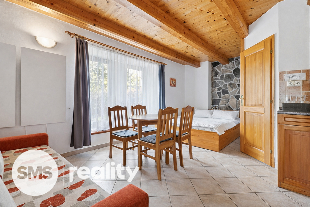Součástí nemovitosti je celkem 7 samostatných apartmánů, přičemž každý z nich má vlastní kuchyňský kout a koupelnu, což zajišťuje maximální komfort a soukromí. Jeden z apartmánů může sloužit jako zázemí či bydlení pro majitele, případně lze prostor upravit dle individuálních potřeb na plnohodnotné rodinné bydlení. Nový majitel si tak může způsob využití přizpůsobit podle svých představ.