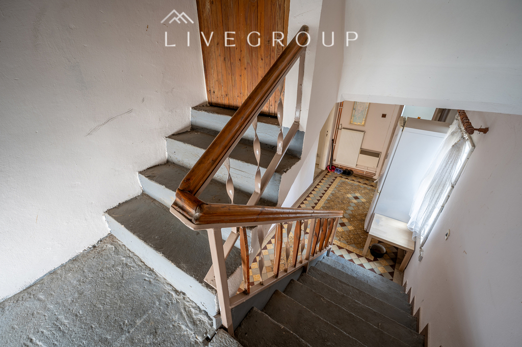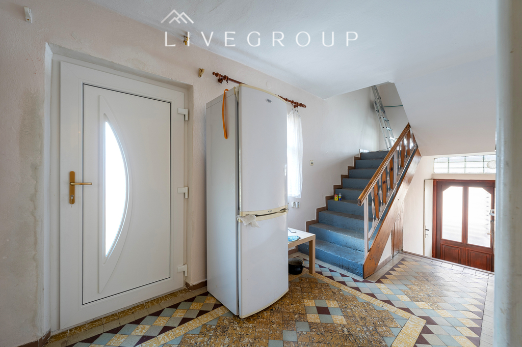 Dále je zde velká ložnice, koupelna, spíž, samostatná toaleta, chodba, ze které je výstup na zahradu a vstupní hala , kde se nachází vstup do domu z ulice, boční výstup na zahradu a schodiště do patra.