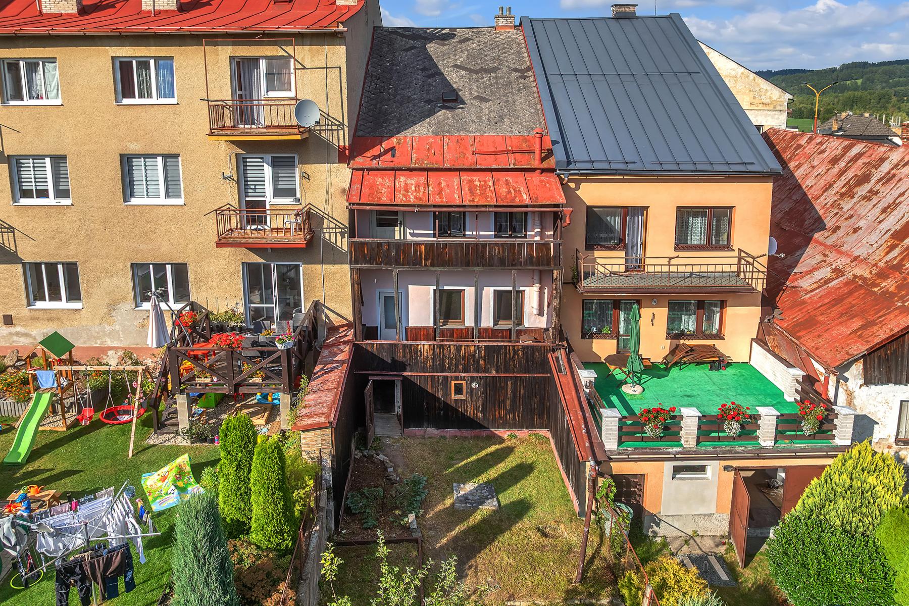 K prodeji je rodinný v centru obce Štíty, na nám. Míru. Zastavěná plocha činí 124 m2 a dům se skládá ze dvou pater a podkroví, v přízemí (částečně 1PP) se nachází sklep, který sloužil jako dílna, v přízemí se nachází nebytový prostor (prodejna s výlohou, kancelář - dříve kadeřnictví) a dále v 1. patře obytné prostory s historickou lodžií. Podkroví je částečně přestavěno na bydlení a částečně je zde prostor půdy. Dům je částečně ve stavu původním z cca 70. let a 80. let, částečně (včetně rozvodů a topení) je nemovitost po rekonstrukci. Dům se nachází v památkové zóně města a vystavěn byl roku 1919. Lze zde spojit bydlení s vlastním podnikáním nebo lze prostor pronajmout a v patrech řešit bytové jednotky též k pronájmu. Zahrada je terasovitě uspořádaná, slunná a nabízí dostatek prostoru pro odpočinek nebo zahrádku. Rádi poskytneme více informací nebo nemovitost představíme při prohlídce.