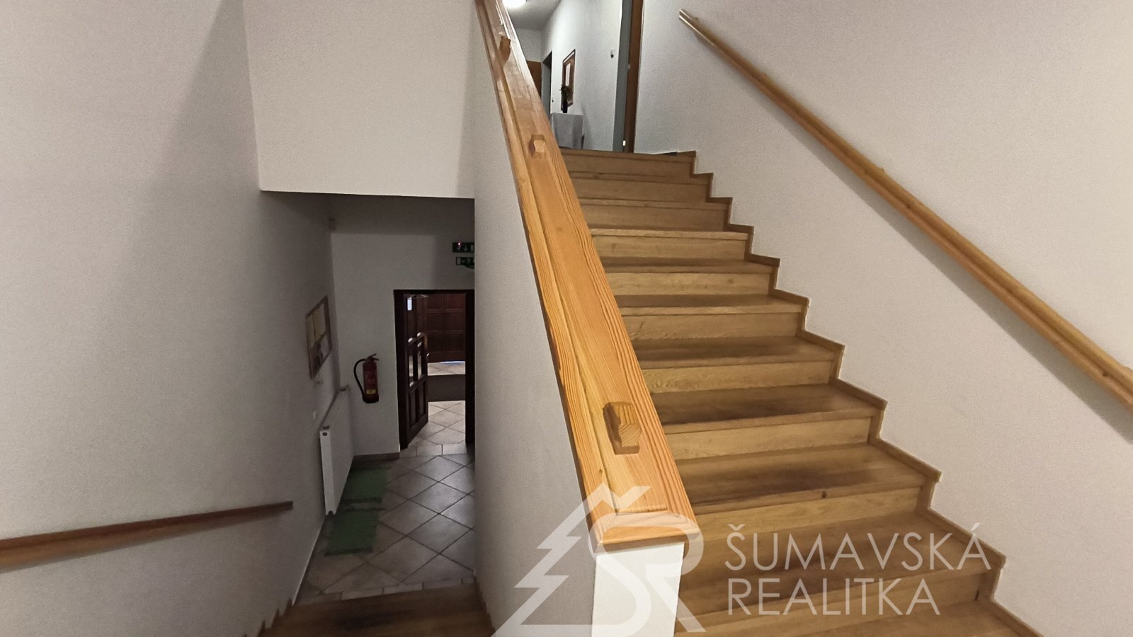 Sociální zázemí pro personál: Dva pokoje pro personál, kolárna a lyžárna pro komfort hostů, kancelář a prostorná společenská místnost.