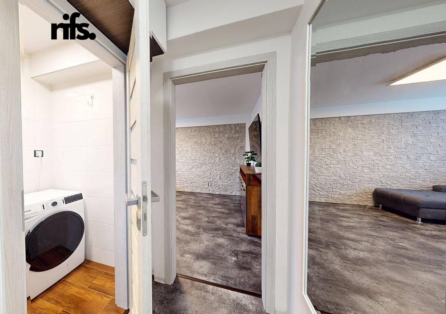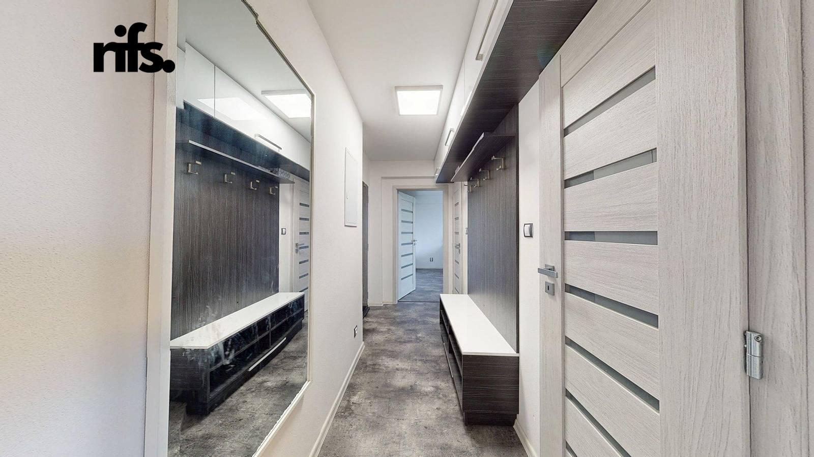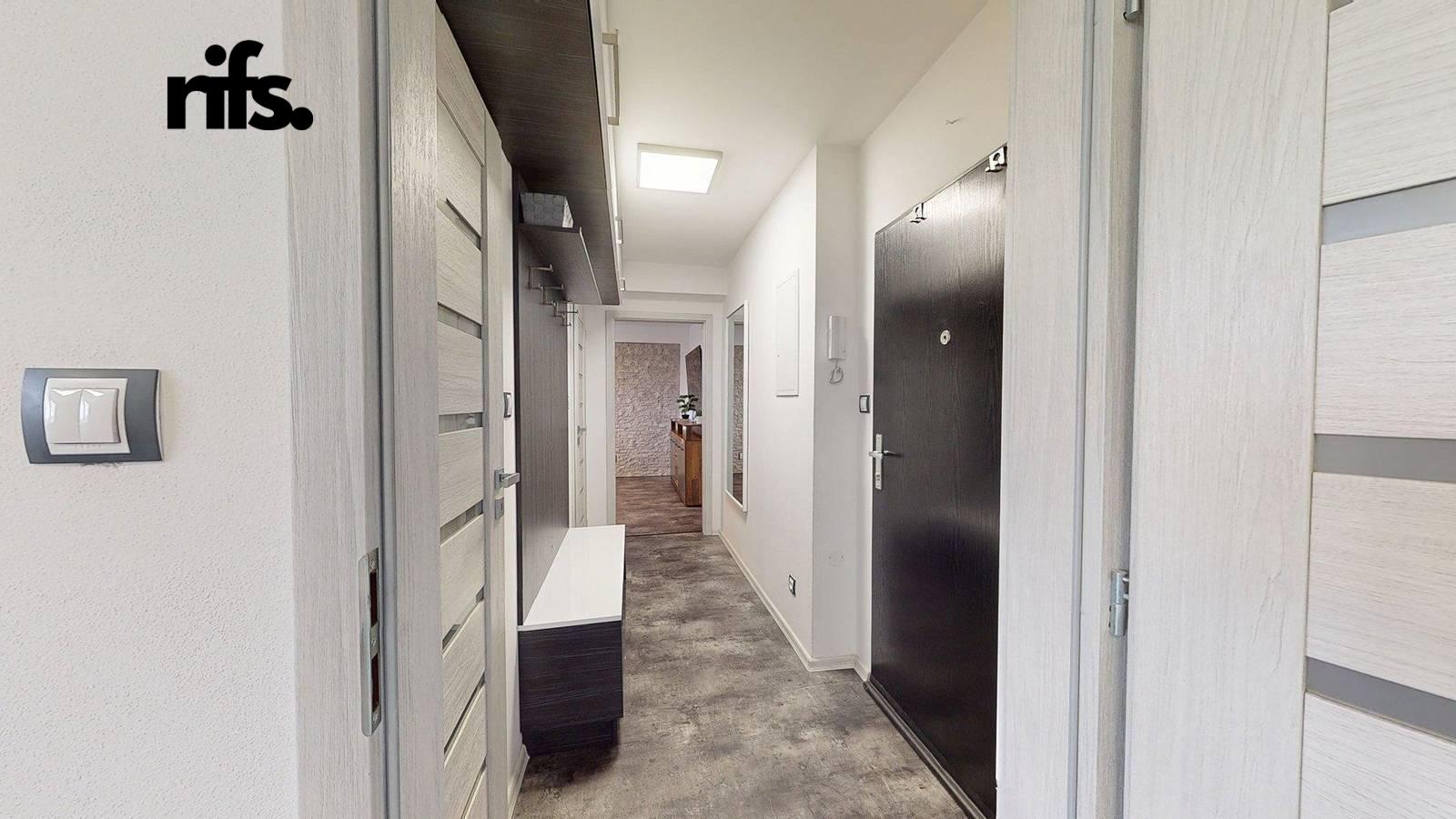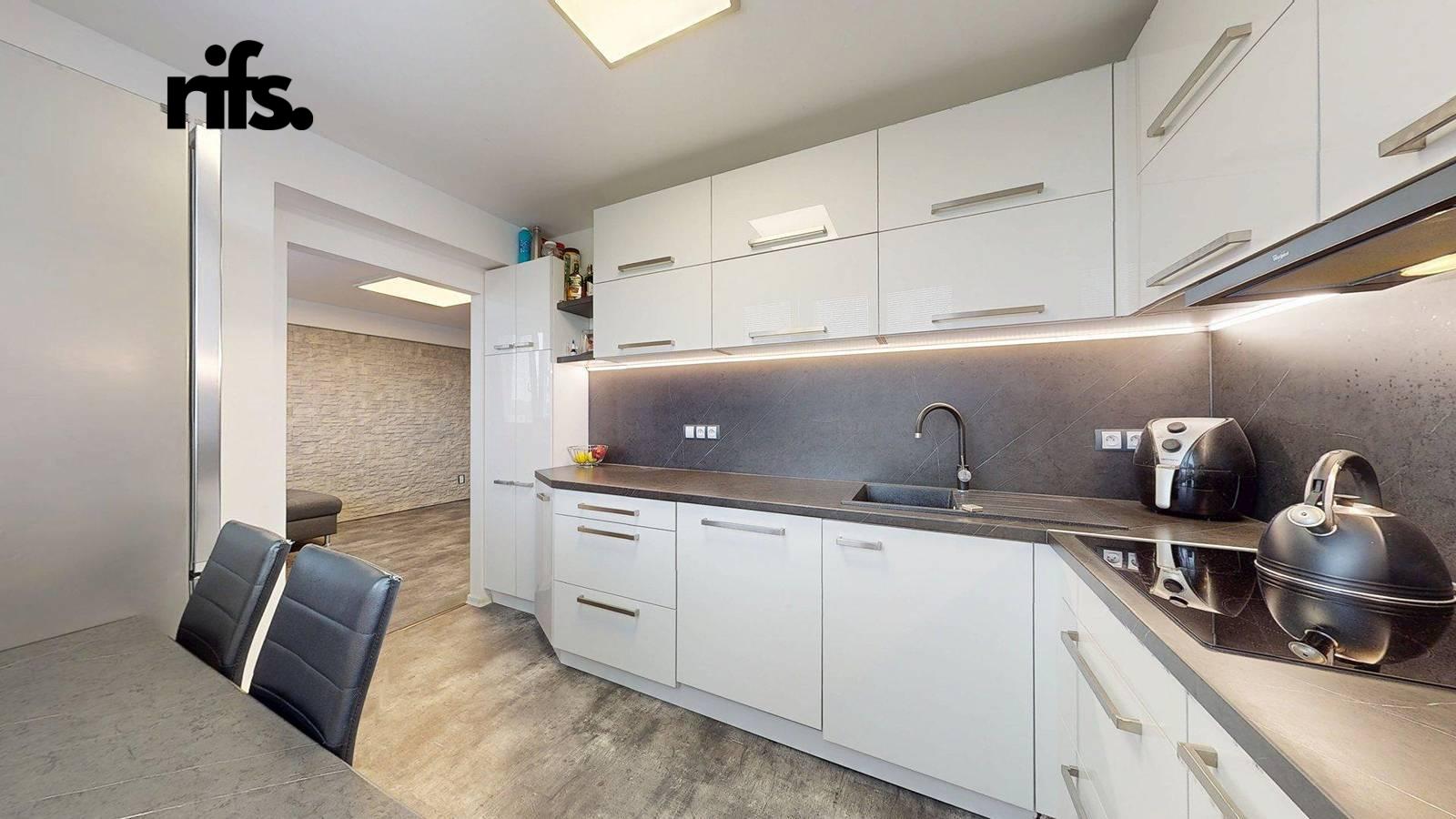 Prodej rekonstruovaného bytu v žádané lokalitě širšího centra Strakonic o dispozici 2+1 a celkové užitné ploše 55 m2, včetně sklepního příslušenství. Byt se nachází ve 4. patře bytového domu s výtahem a je po kompletní zdařilé rekonstrukci - plastová okna s žaluziemi, vystěrkované a vyrovnané podlahy včetně krytin - linoleum s povrchovou imitací matného kamene, zděné jádro, koupelna s prostorným sprchovým koutem a prostorem pro pračku se sušičkou, oddělené sociální zařízení s odkladovým prostorem a úložnou skříňkou nad závěsným wc, obkladové dlažby, vyštukované zdivo celého bytu, dekorační kamenný obklad v obýváku, sádrokartonové podhledy, rozvody elektro v Cu, voda i odpady, odvětrávání prostor bytového jádra, dvojdesková topná tělesa + žebřík v koupelně s termostatickými hlavicemi, dveřní křídla, aj.. Dále jsou v obytných místnostech na stěnách instalované přípojky pro nástěnné umístění televizorů. Na míru řešená kuchyňská linka včetně vestavěných spotřebičů - myčka, trouba, mikrovlnka, digestoř, přidružená spíš v designu kuchyně - kuchyně otevřená do obýváku. Na chodbě je pak na míru dělaný úložný systém skříněk nad věšákem, tak, že opticky ani prostorově nenarušuje tento propojovací vstupní prostor, v pokoji je dále součástí vestavěná skříň. Dispozice bytu je velmi dobře řešena, že je rozdělena vstupní chodbou (4,5 m2) na denní část - kuchyně (8.5 m2) propojená s obývacím prostorem (17,5 m2) a na druhou stranu ložnice/pokoj (18 m2), koupelna (3,5 m2) a WC (1 m2) mají pak vstup samozřejmě z chodby. Veškerá vybavenost a služby jsou dostupné ve městě, viz. odkazy pod inzerátem na inzertních serverech. Orientace oken je do klidné zadní části bloku s možností parkování, s orientací JZ směrem, čili se jedná o slunný byt. Nemovitost si můžete také projít ve virtuální prohlídce s možností zoomování, či měření. Více informací rád sdělím na dotaz, či osobně na prohlídce.