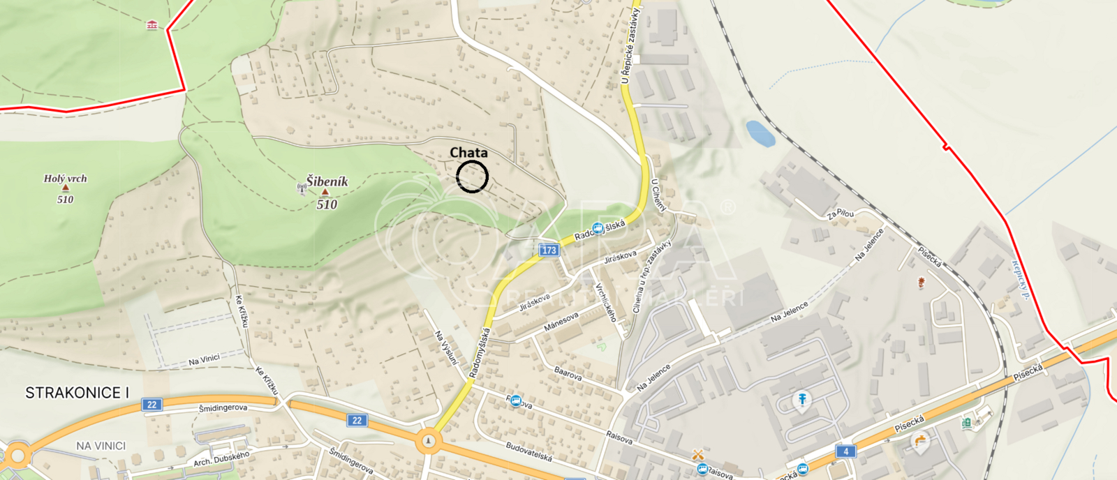 Chata o zastavěné ploše 17 m2 se nachází na pozemku o rozloze 459 m2.