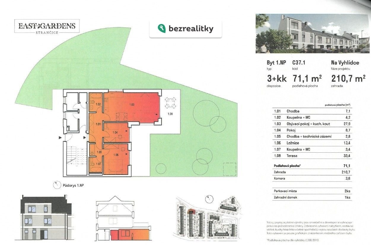 - soukromá zahrada 210,7 m² (přímé vlastnictví)