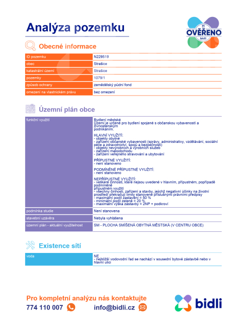 U pozemku p.č.1079/1, k.ú. Strašice [756229] jsou Inženýrské sítě (voda, elektřina, kanalizace) v dosahu.