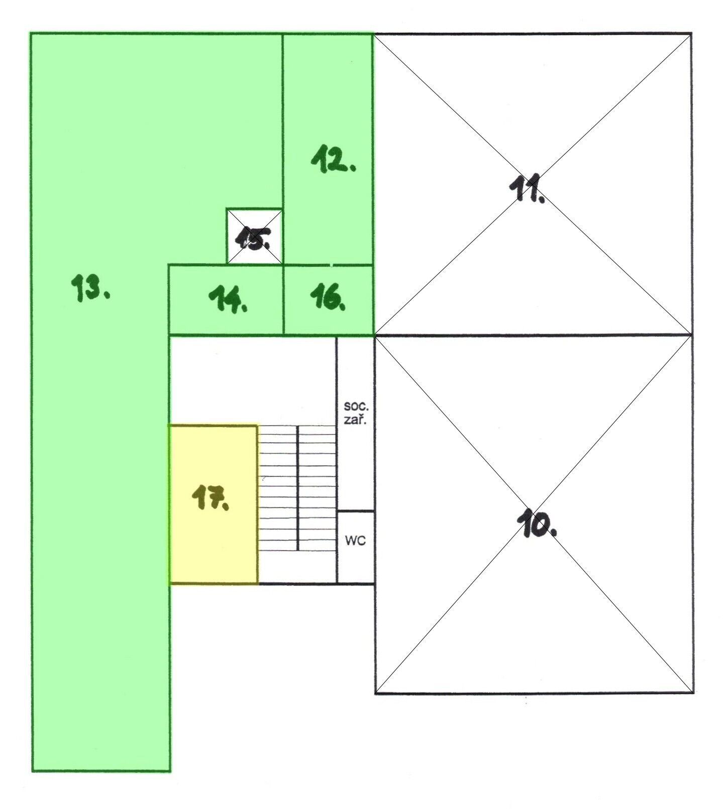 - přístup na společnou toaletu a pěší přístup do prostorů po centrálním schodišti