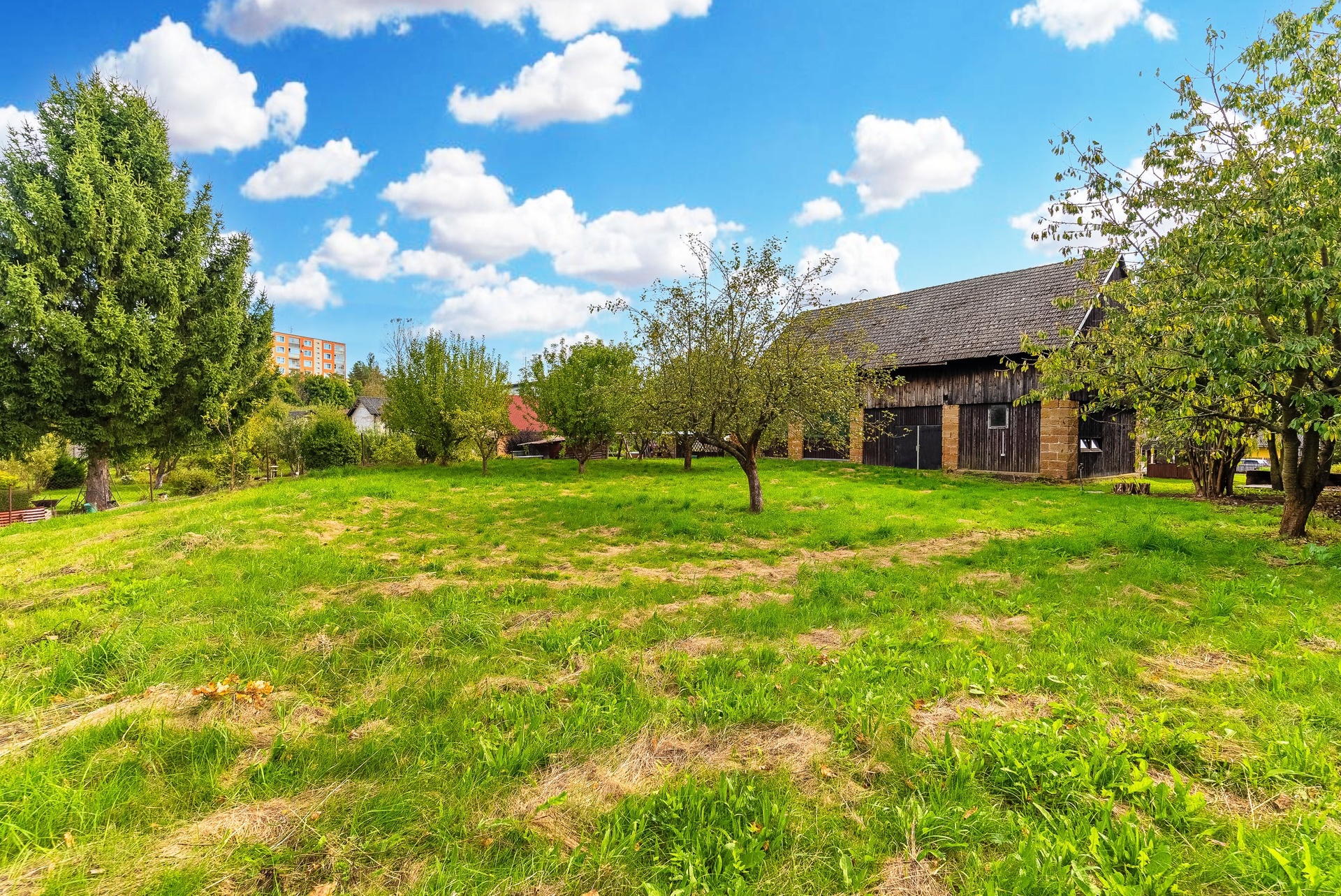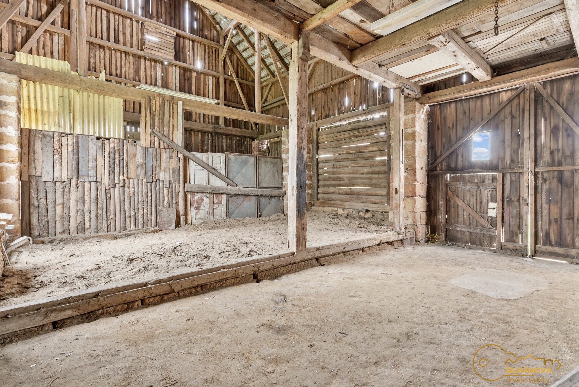 Součástí nemovitosti je také prostorná stodola, která se dnes již v takovém rozsahu běžně nevyskytuje. Nabízí praktické využití jako sklad, dílna nebo zázemí pro techniku, zároveň ale představuje výrazný potenciál – po úpravě může sloužit například pro podnikání, pořádání svateb, rodinných oslav, rautů či firemních akcí.
