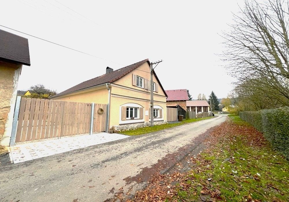 Samostatně stojící dům po kompletní rekonstrukci a přestavbě s kompletním provozním příslušenstvím a vybavením, vedlejšími stavbami, terasou a navazující zahradou o celkové výměře pozemků 584 m2 v klidné okrajové části obce. Přízemní nepodsklepený RD o dispozici obytných prostor 5+1 ve dvou nadzemních podlažích (přízemí+podkroví) s kompletním provozním zázemím, vkusně řešenými interiéry, nyní sloužící ke komerčním krátkodobým pronájmům k celoročnímu rekreačnímu využití. Objekt vesnického domu byl před rokem kompletně přestavěn, modernizován, adaptován do současné podoby a následně využíván ke komerčnímu rekreačnímu pronájmu se zajištěným celoročním výnosem. V případě využití nemovitosti k vlastnímu trvalému či rekreačnímu bydlení je objekt RD připraven k okamžitému užívání „na klíč“ dle představ nového vlastníka. ENB třída: „G“ průkaz nezpracován. Na objekt RD navazují vlastní pozemky s vedlejšími drobnými stavbami (letní pergola, venkovní sezení, kolna, sklad), zpevněnými venkovními úpravami, udržovaným travním porostem a okrasnými dřevinami s klidovou, užitkovou a manipulační plochou, tvořící jeden uzavřený oplocený soubor nemovitostí původní venkovské usedlosti. Nemovitosti jsou situovány v mírně svažitém terénu s orientací pozemků na severozápad, navazují na veřejné prostranství po celé šíři pozemků na příjezdovou veřejnou komunikaci se zpevněným vjezdem a vstupem s dobrou dopravní dostupností. Nabízené nemovitosti jsou vhodné a využitelné k trvalému rodinnému bydlení, celoroční rekreaci, či zachování stávajícího komerčního krátkodobého pronájmu nemovitosti se zajímavým výnosem z krátkodobých nájmů. Lokace nemovitosti v klidném přírodním prostředí malebné historické obce s navazující zástavbou vesnických stavení s dostupností základních služeb a infrastruktury v cca 5 km vzdálené obci Stráž, cca 15 km od sjezdu na dálnici D5 PlzeňRozvadov. Předností nabízených nemovitostí je velmi dobrý technický stav nemovitosti po kompletní rekonstrukci dokončené v r. 2025, kompletní provozní vybavenost objektu, aktuální okamžitý výnos z krátkodobých komerčních pronájmů, lokace nemovitostí v klidné okrajové části obce v přírodní venkovské krajině, blízkost dálnice D5 a možnost okamžitého užívání a bydlení. Dispozice: přízemí vstup, předsíň se schodištěm, obytná místnost s krbovými kamny, kuchyně s jídelnou, 2x ložnice, koupelna (sprchový kout, umyvadlo), WC, technická místnost… terasa. Podkroví schodiště, hala, otevřený obytný podkrovní prostor, ložnice, koupelna s WC (sprchový kout, umyvadlo, WC). Přístup z veřejné zpevněné komunikace (vstup + vjezd), elektřina (220/380 V), napojeno na veřejný vodovod, odkanalizováno přes septik s přepadem do povrchové kanalizace, bez napojení na rozvod plynu, internetair. Vytápění: centrální tepelným čerpadlem (voda/vzduch) + lokální (doplňkové) na tuhá paliva krbová kamna. Zastavěná plocha RD: 128 m2, vnitřní užitní plocha objektu: cca 210 m2, plocha pozemků celkem: 584 m2.