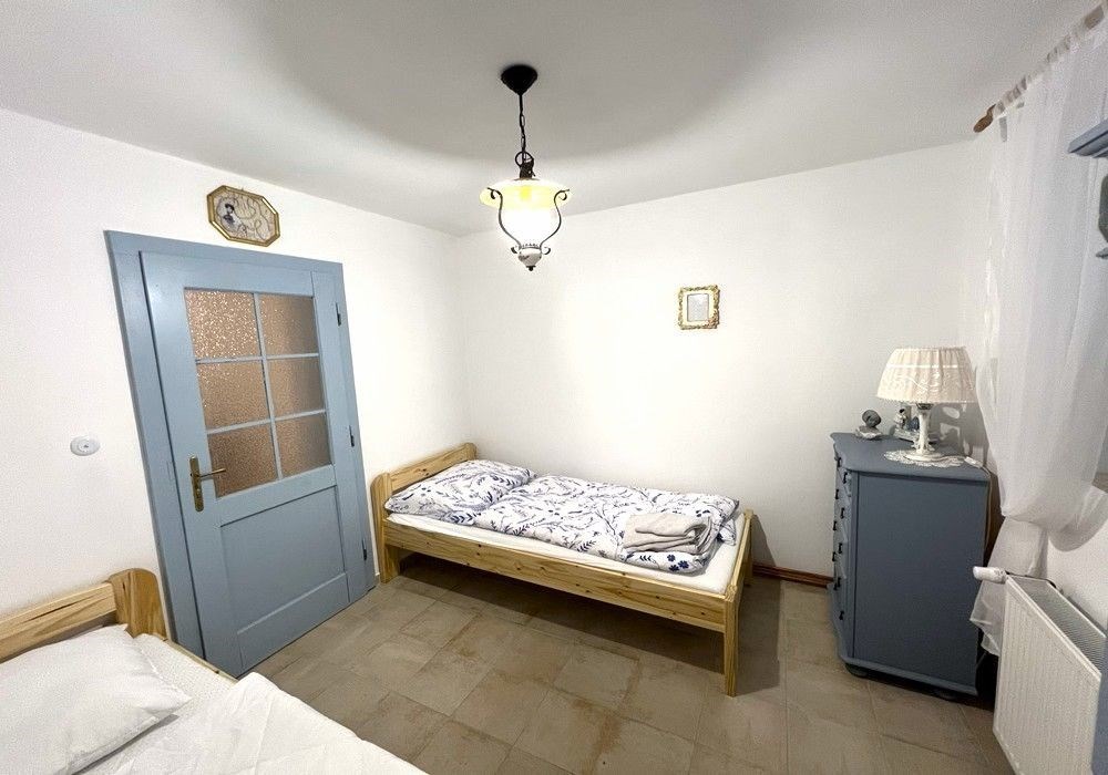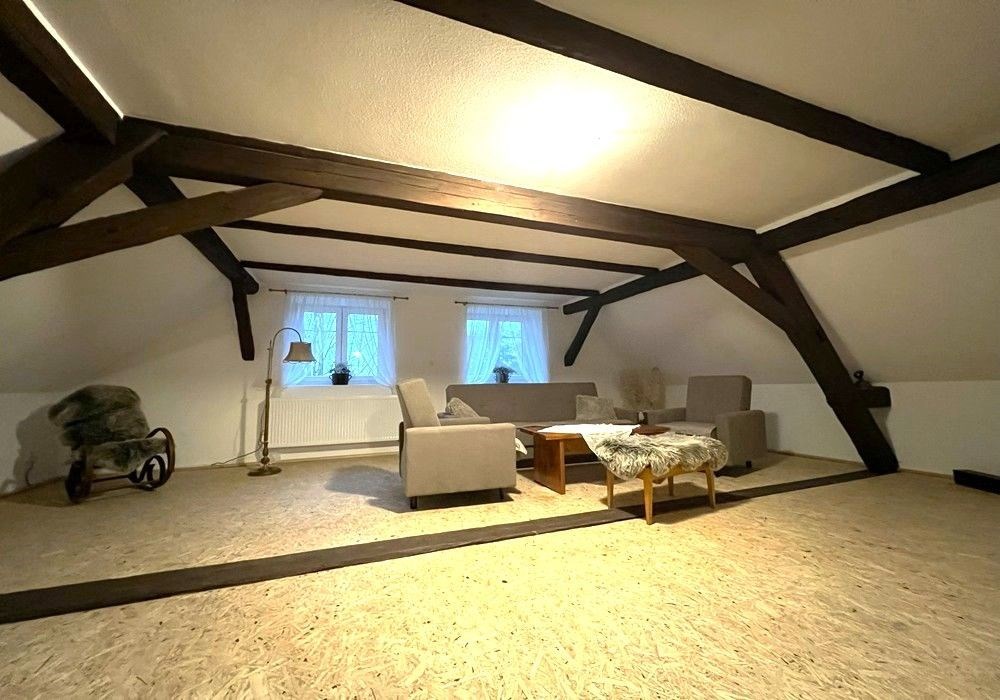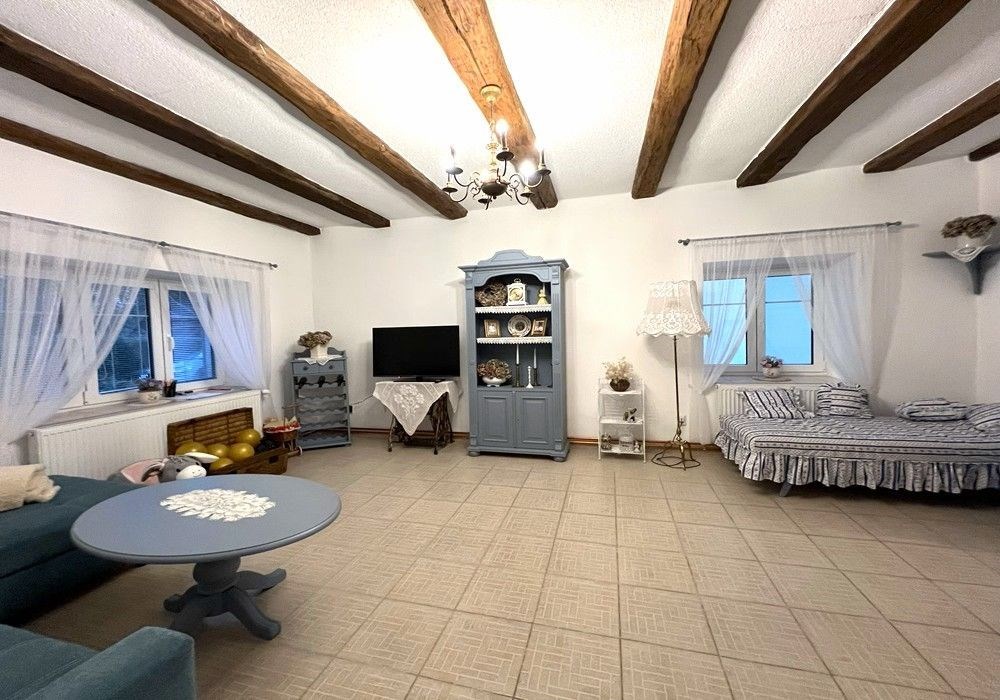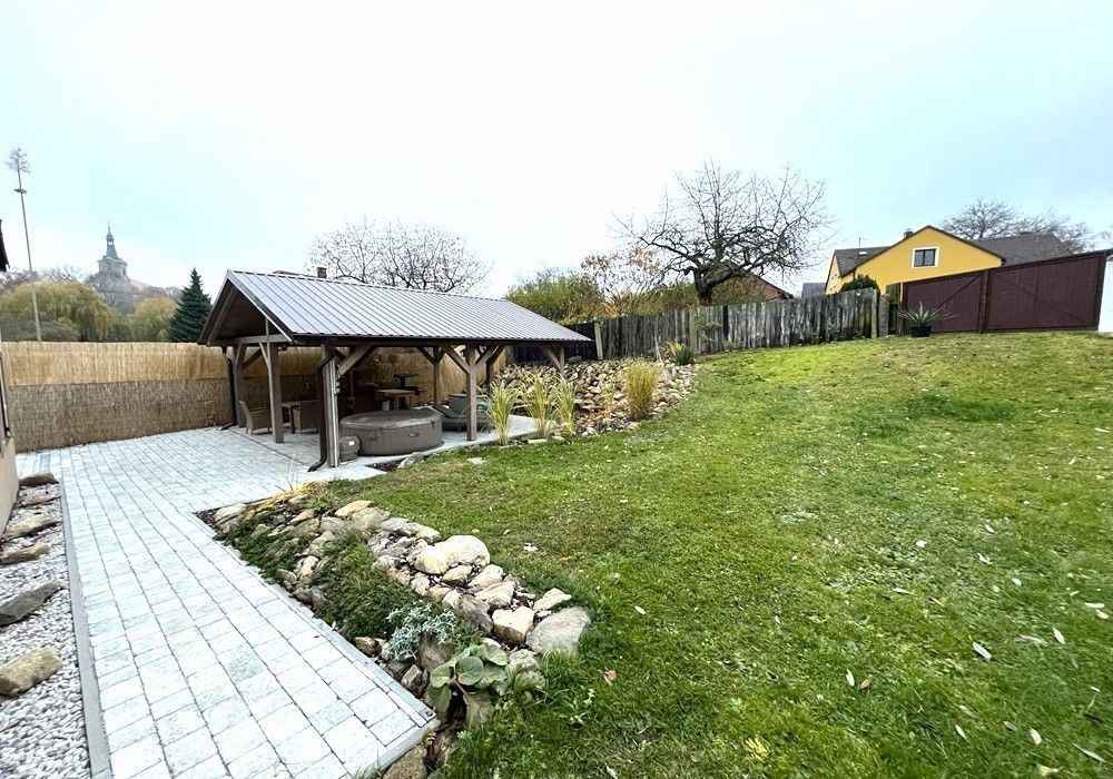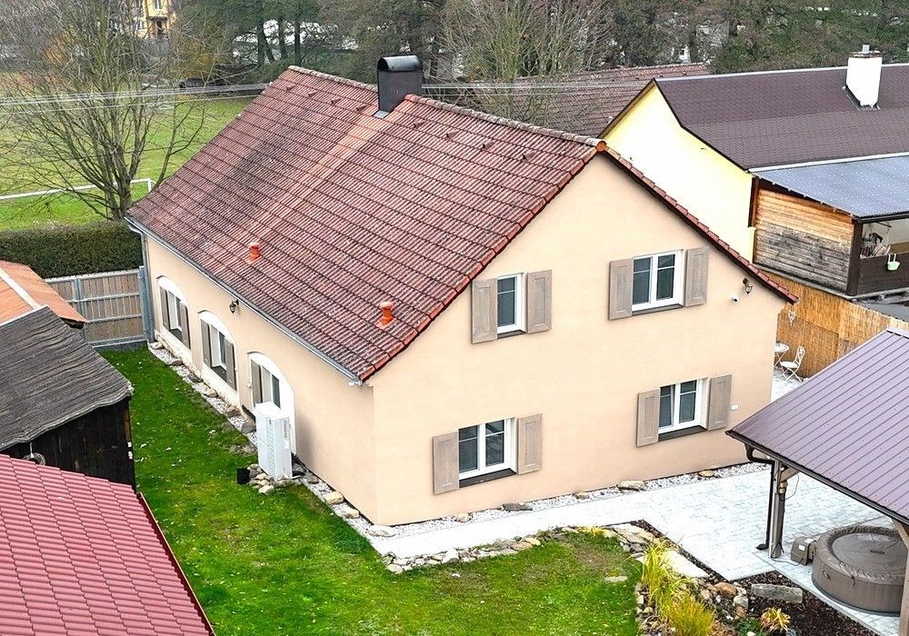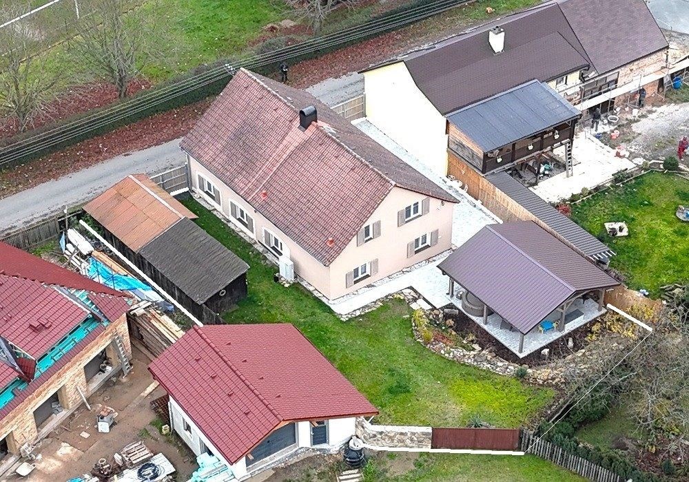 Samostatně stojící dům po kompletní rekonstrukci a přestavbě s kompletním provozním příslušenstvím a vybavením, vedlejšími stavbami, terasou a navazující zahradou o celkové výměře pozemků 584 m2 v klidné okrajové části obce. Přízemní nepodsklepený RD o dispozici obytných prostor 5+1 ve dvou nadzemních podlažích (přízemí+podkroví) s kompletním provozním zázemím, vkusně řešenými interiéry, nyní sloužící ke komerčním krátkodobým pronájmům k celoročnímu rekreačnímu využití. Objekt vesnického domu byl před rokem kompletně přestavěn, modernizován, adaptován do současné podoby a následně využíván ke komerčnímu rekreačnímu pronájmu se zajištěným celoročním výnosem. V případě využití nemovitosti k vlastnímu trvalému či rekreačnímu bydlení je objekt RD připraven k okamžitému užívání „na klíč“ dle představ nového vlastníka. ENB třída: „G“ průkaz nezpracován. Na objekt RD navazují vlastní pozemky s vedlejšími drobnými stavbami (letní pergola, venkovní sezení, kolna, sklad), zpevněnými venkovními úpravami, udržovaným travním porostem a okrasnými dřevinami s klidovou, užitkovou a manipulační plochou, tvořící jeden uzavřený oplocený soubor nemovitostí původní venkovské usedlosti. Nemovitosti jsou situovány v mírně svažitém terénu s orientací pozemků na severozápad, navazují na veřejné prostranství po celé šíři pozemků na příjezdovou veřejnou komunikaci se zpevněným vjezdem a vstupem s dobrou dopravní dostupností. Nabízené nemovitosti jsou vhodné a využitelné k trvalému rodinnému bydlení, celoroční rekreaci, či zachování stávajícího komerčního krátkodobého pronájmu nemovitosti se zajímavým výnosem z krátkodobých nájmů. Lokace nemovitosti v klidném přírodním prostředí malebné historické obce s navazující zástavbou vesnických stavení s dostupností základních služeb a infrastruktury v cca 5 km vzdálené obci Stráž, cca 15 km od sjezdu na dálnici D5 PlzeňRozvadov. Předností nabízených nemovitostí je velmi dobrý technický stav nemovitosti po kompletní rekonstrukci dokončené v r. 2025, kompletní provozní vybavenost objektu, aktuální okamžitý výnos z krátkodobých komerčních pronájmů, lokace nemovitostí v klidné okrajové části obce v přírodní venkovské krajině, blízkost dálnice D5 a možnost okamžitého užívání a bydlení. Dispozice: přízemí vstup, předsíň se schodištěm, obytná místnost s krbovými kamny, kuchyně s jídelnou, 2x ložnice, koupelna (sprchový kout, umyvadlo), WC, technická místnost… terasa. Podkroví schodiště, hala, otevřený obytný podkrovní prostor, ložnice, koupelna s WC (sprchový kout, umyvadlo, WC). Přístup z veřejné zpevněné komunikace (vstup + vjezd), elektřina (220/380 V), napojeno na veřejný vodovod, odkanalizováno přes septik s přepadem do povrchové kanalizace, bez napojení na rozvod plynu, internetair. Vytápění: centrální tepelným čerpadlem (voda/vzduch) + lokální (doplňkové) na tuhá paliva krbová kamna. Zastavěná plocha RD: 128 m2, vnitřní užitní plocha objektu: cca 210 m2, plocha pozemků celkem: 584 m2