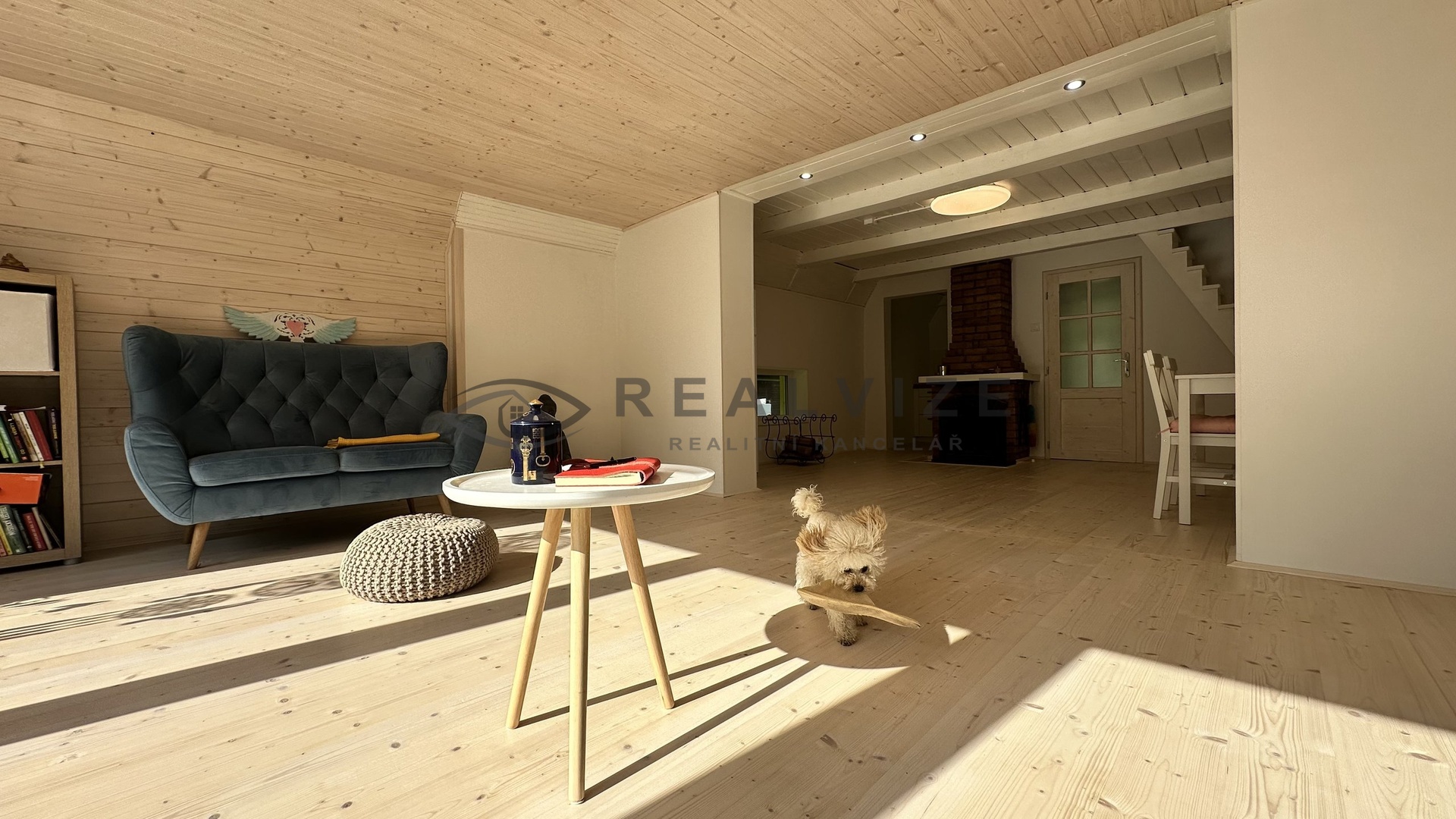 Také nově zvětšil původní prostor a tím získal prostorný obývací pokoj a jižní stranu chaty osadil velkými okny, díky kterým je přízemí chaty nádherně prosluněné.