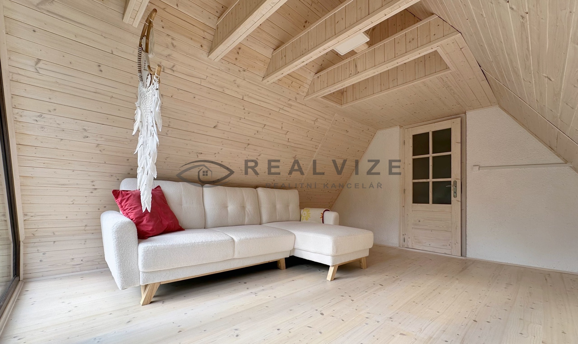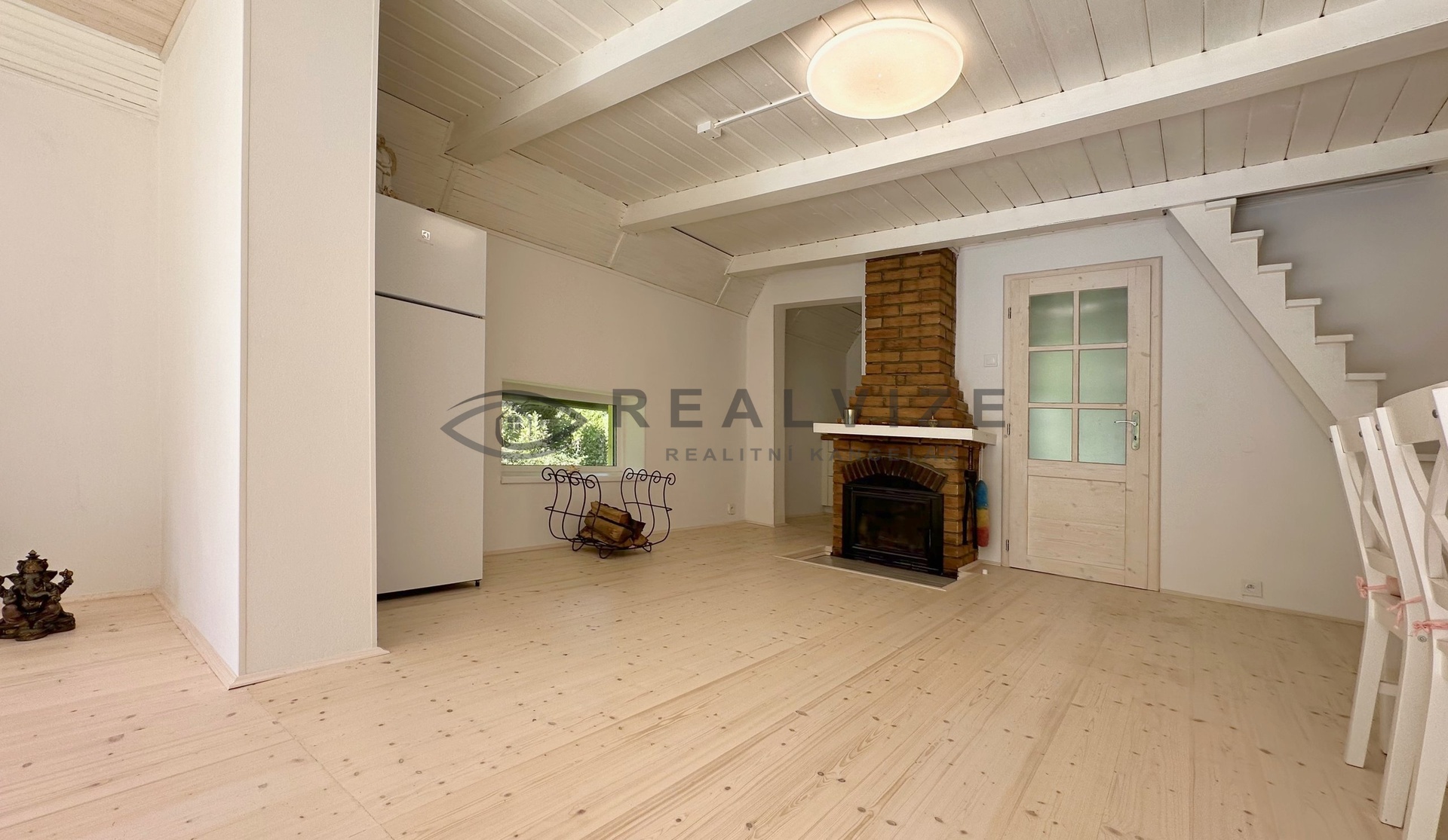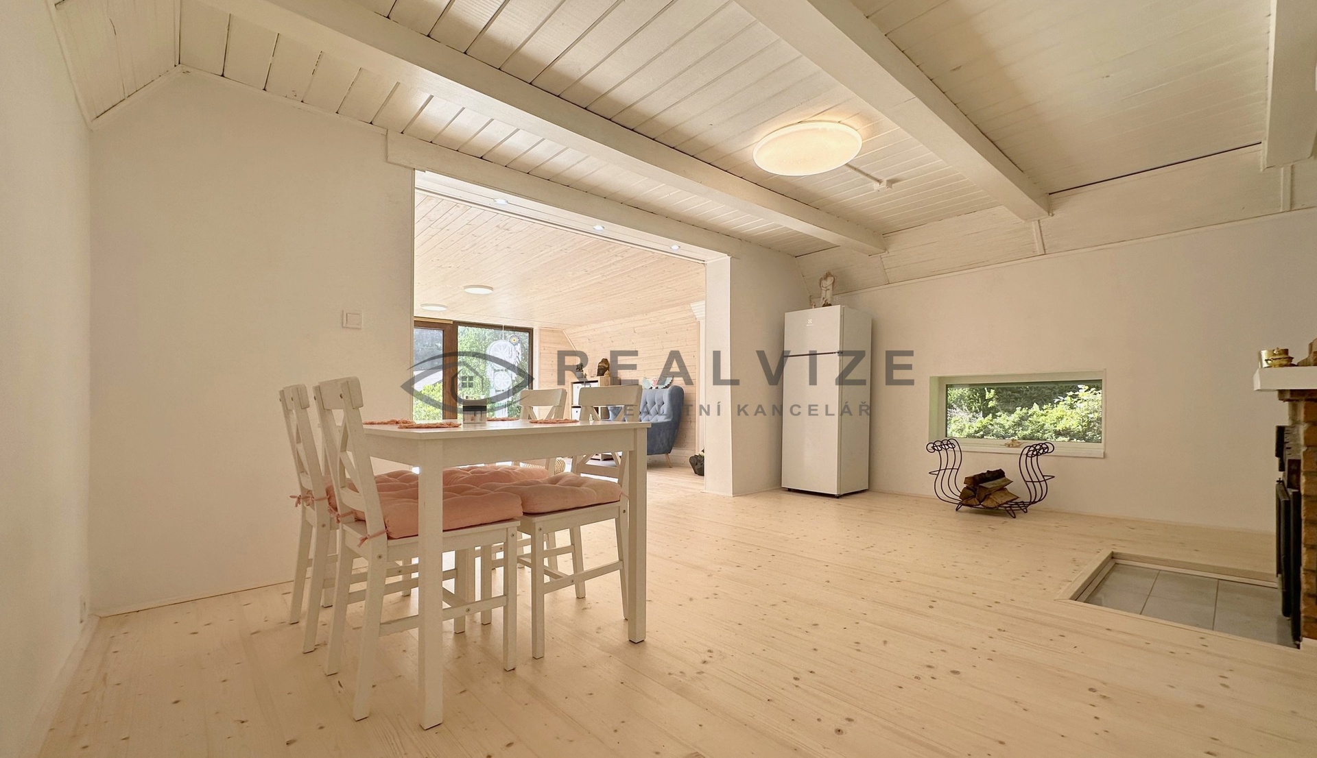 Chata je zrenovována velmi vkusně - vše laděno do světlých odstínů a dřeva.