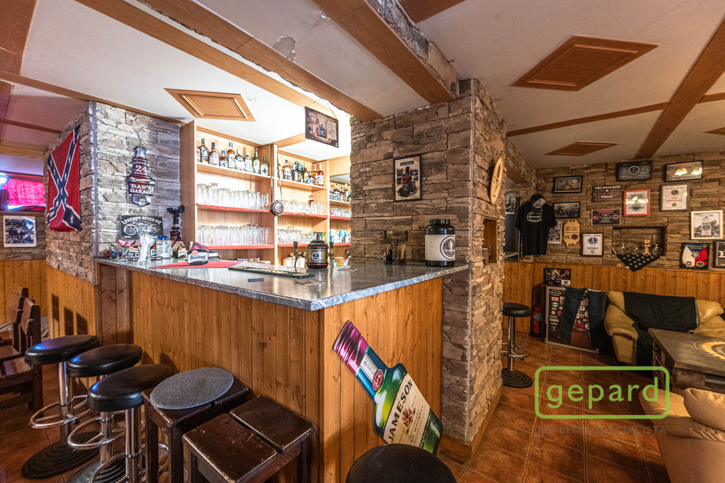 Budova má jedno podzemní a dvě nadzemní podlaží. V suterénu je stylová vinárna/bar, vhodná pro provoz i soukromé akce. V přízemí je restaurace se zázemím; část sálů je aktuálně oddělena a upravena jako bytová jednotka o dispozici 2+1 se samostatným vstupem po venkovním ocelovém schodišti na zadní straně objektu. V podkroví jsou tři bytové jednotky (dispozice 1x 2+1 a 2x 2+kk) a pokoj (ubytovna) s příslušenstvím, vstup do podkroví je rovněž zajištěn po venkovním ocelovém schodišti na zadní straně budovy. Objekt je napojen na veškeré inženýrské sítě. Vytápění a ohřev vody pro suterén a přízemí zajišťuje společný plynový kotel, bytové jednotky mají samostatné elektrokotle a boilery. Objekt je po částečné rekonstrukci (střecha, nezkolaudované bytové jednotky v podkroví a v přízemí).