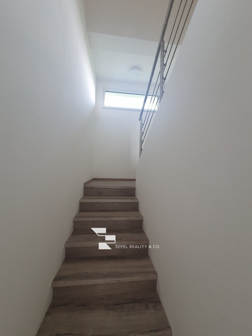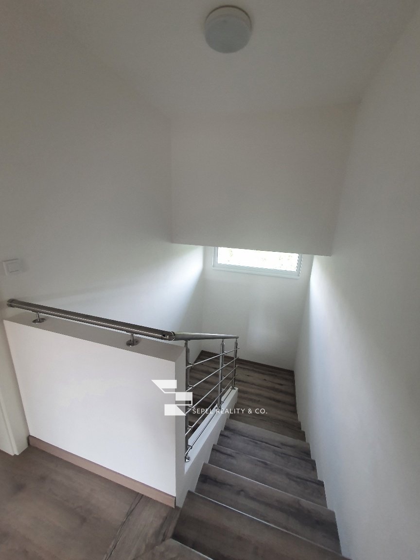 V patře jsou 3 samostatné pokoje, toaleta s umyvadlem a možností připojení pračky. Koupelna má sprchový kout.
