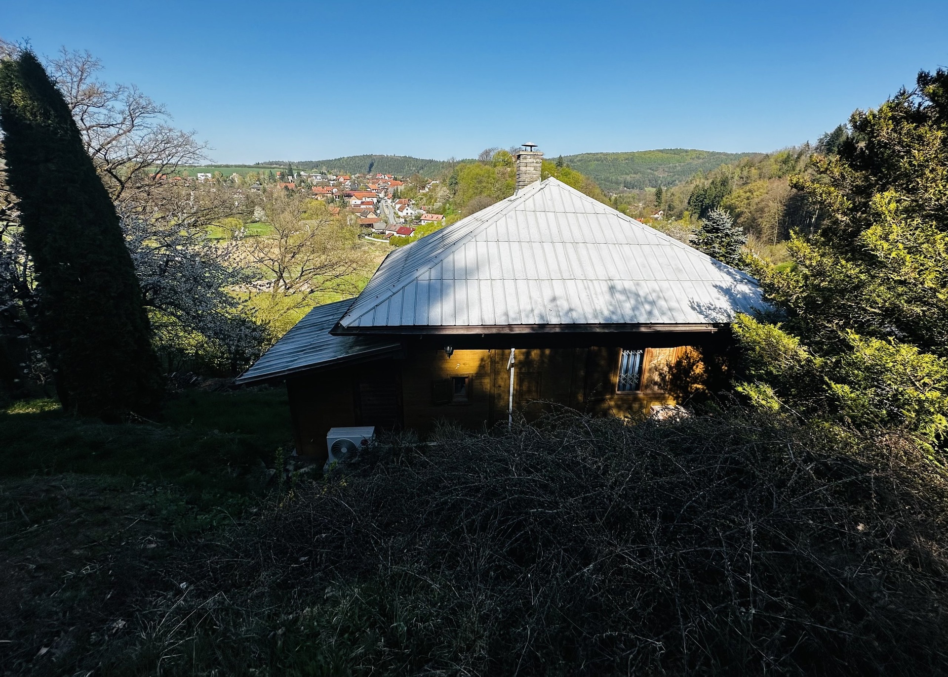 Prodej chaty s pozemkem a garáží v obci Stříbrná Skalice, Posázaví, 35 km jihovýchodním směrem od Prahy. Pozemek je v územním plánu označen jako stavební, možnost přestavby nebo nové stavby určené k bydlení. Na hranici pozemku je přípojka kanalizace i vodovodu.