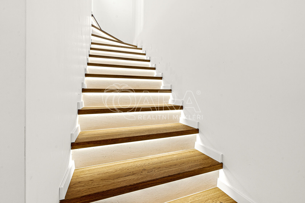 ✅ Dubové schodiště s podsvícením – estetický i funkční prvek