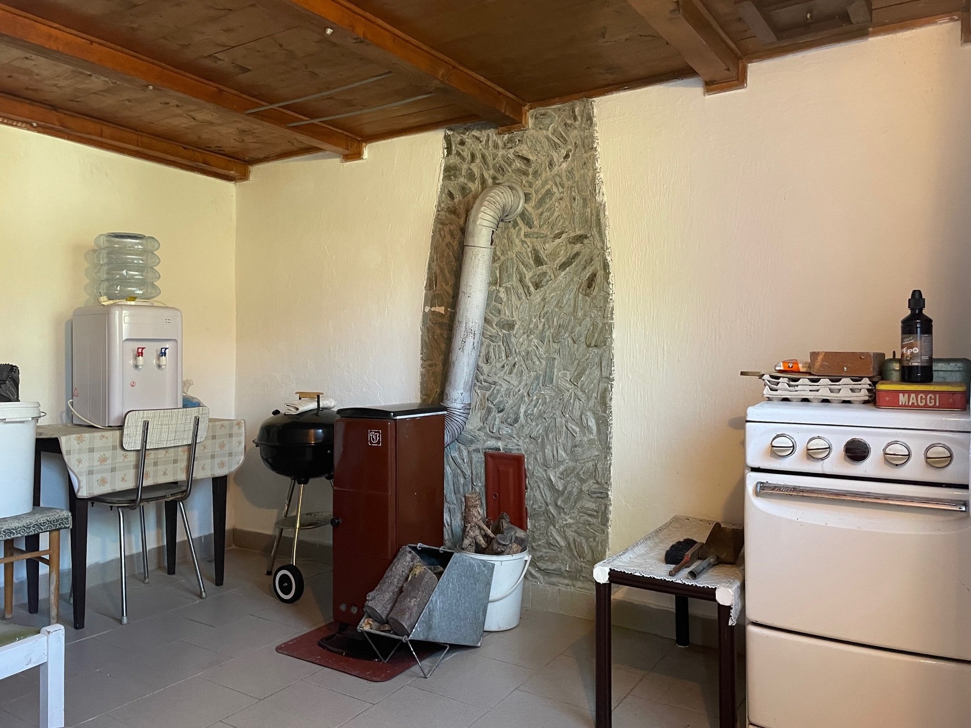 1. podlaží je zděné a skládá se z jedné místnosti a spižírny. 2. podlaží je dřevěné a je zde terasa s nádherným výhledem na okolí, zádveří a pokoj.