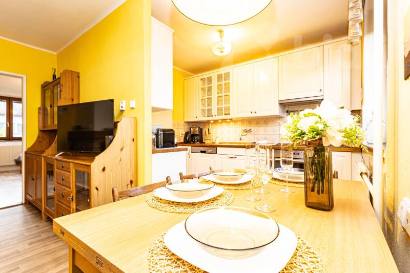 Interiér domu působí příjemným a útulným dojmem. Vše je pečlivě udržované a připravené k okamžitému užívání bez nutnosti větších investic.