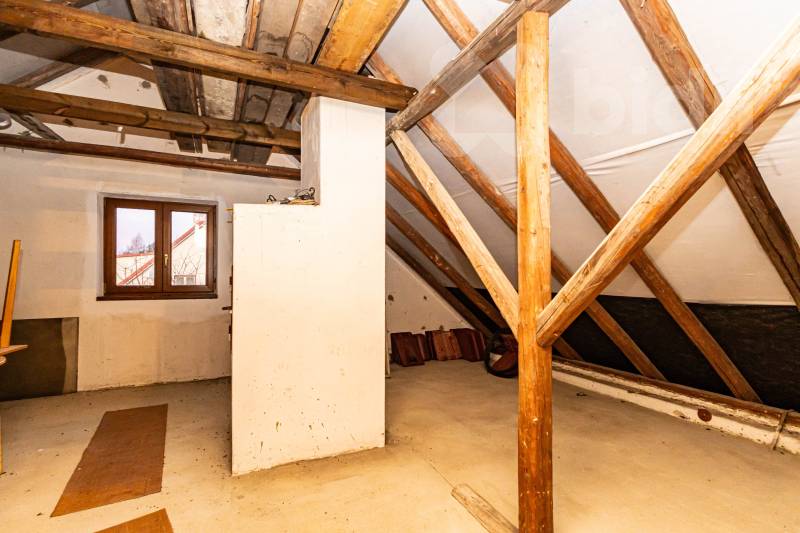 V podkroví se nachází další pokoj a půdní prostor připravený k dalšímu potenciálnímu rozšíření obytné podlahové plochy.