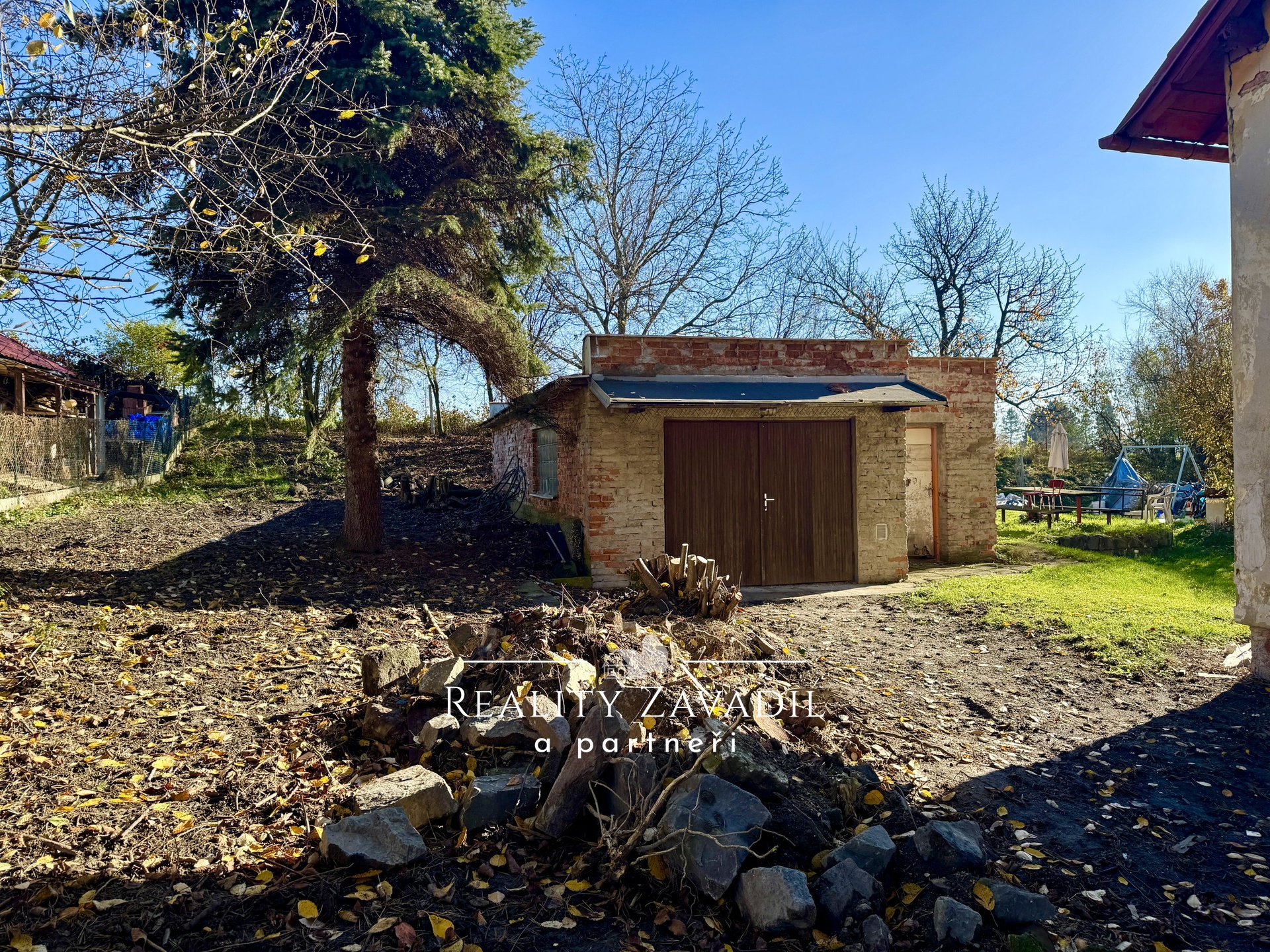 Součástí nemovitosti je rozlehlý, slunný pozemek o velikosti 761 m², na kterém se nachází garáž a technické zázemí.