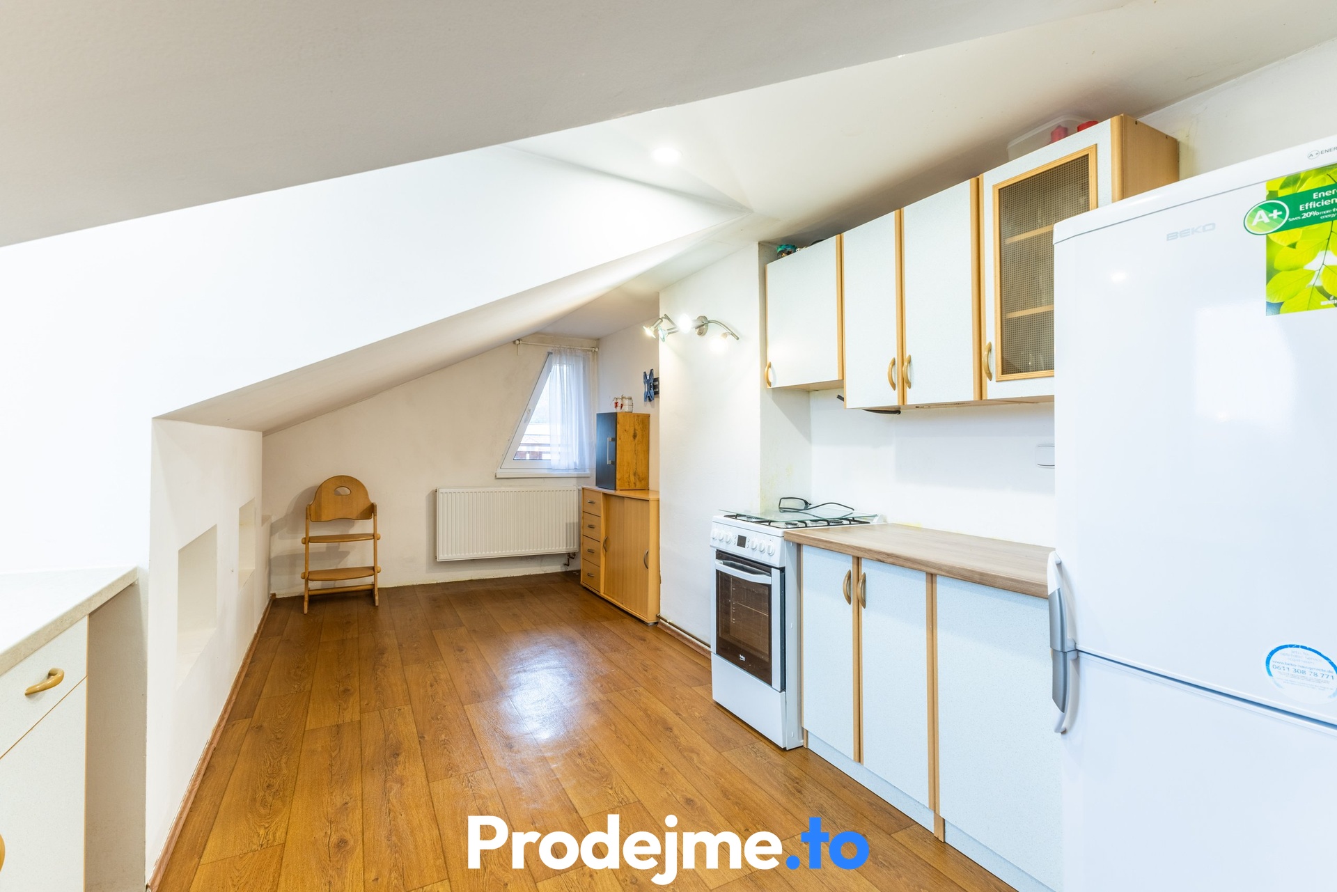 Podkroví bylo upraveno k bydlení a nabízí dispozici 2+1 o velikosti 70 m2. Najdete zde kuchyni, obývací pokoj se vstupem na lodžii, ložnici, samostatnou toaletu a vstupní chodbu s atypicky řešeným sprchovým koutem v rohu místnosti. Pro plnohodnotné dvougenerační bydlení bude vhodné zde doplnit samostatnou koupelnu. Součástí obytného podkroví je také půda, která poslouží především jako úložný prostor.
