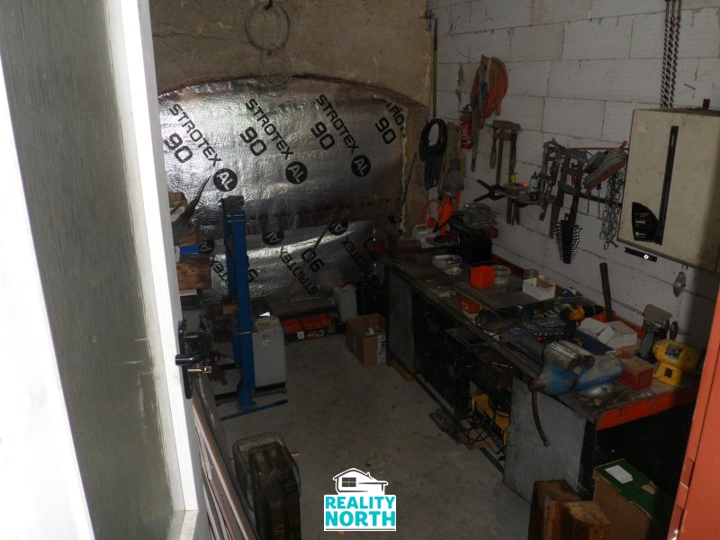 V přízemí domu se nachází dílna(původně byla garáž), bytová jednotka o dispozici 3+1, vstup do sklepa.