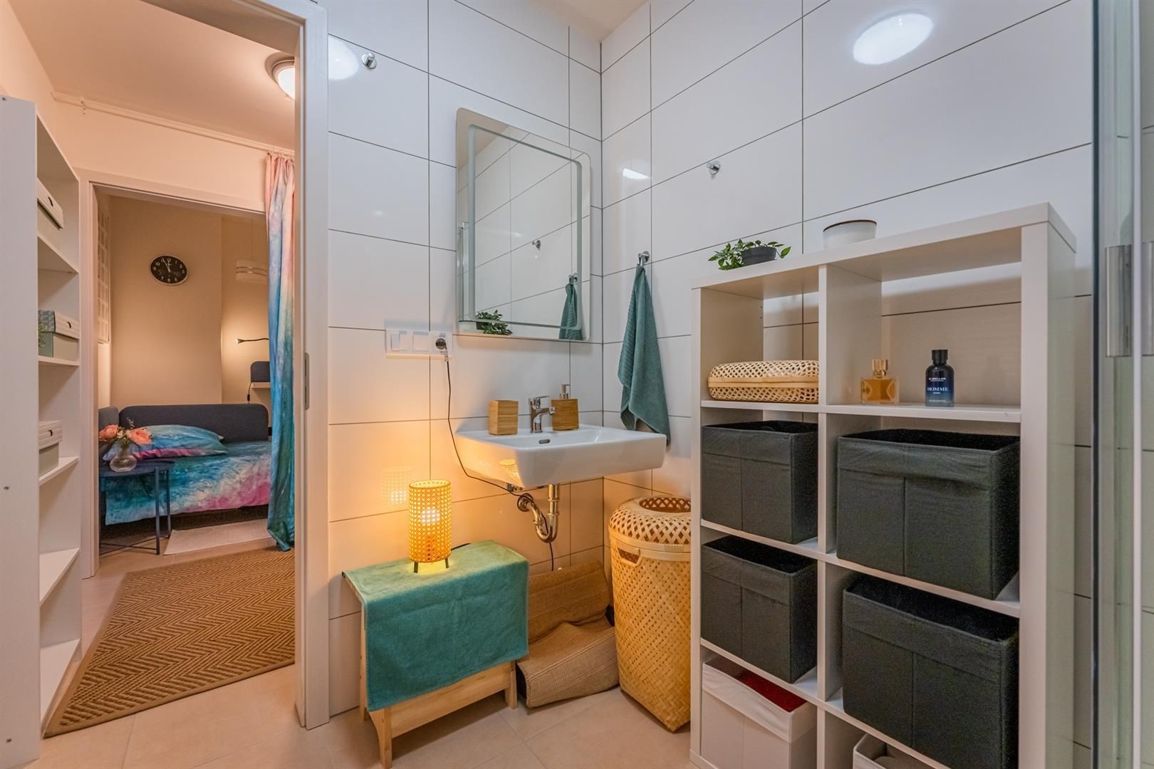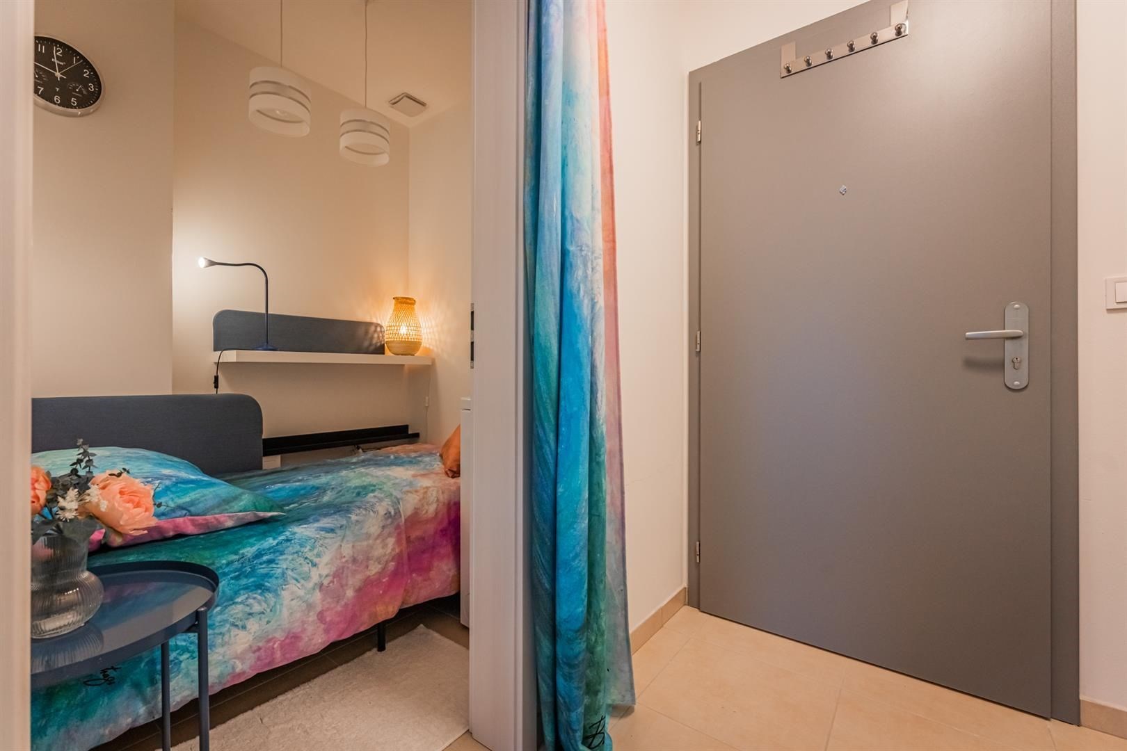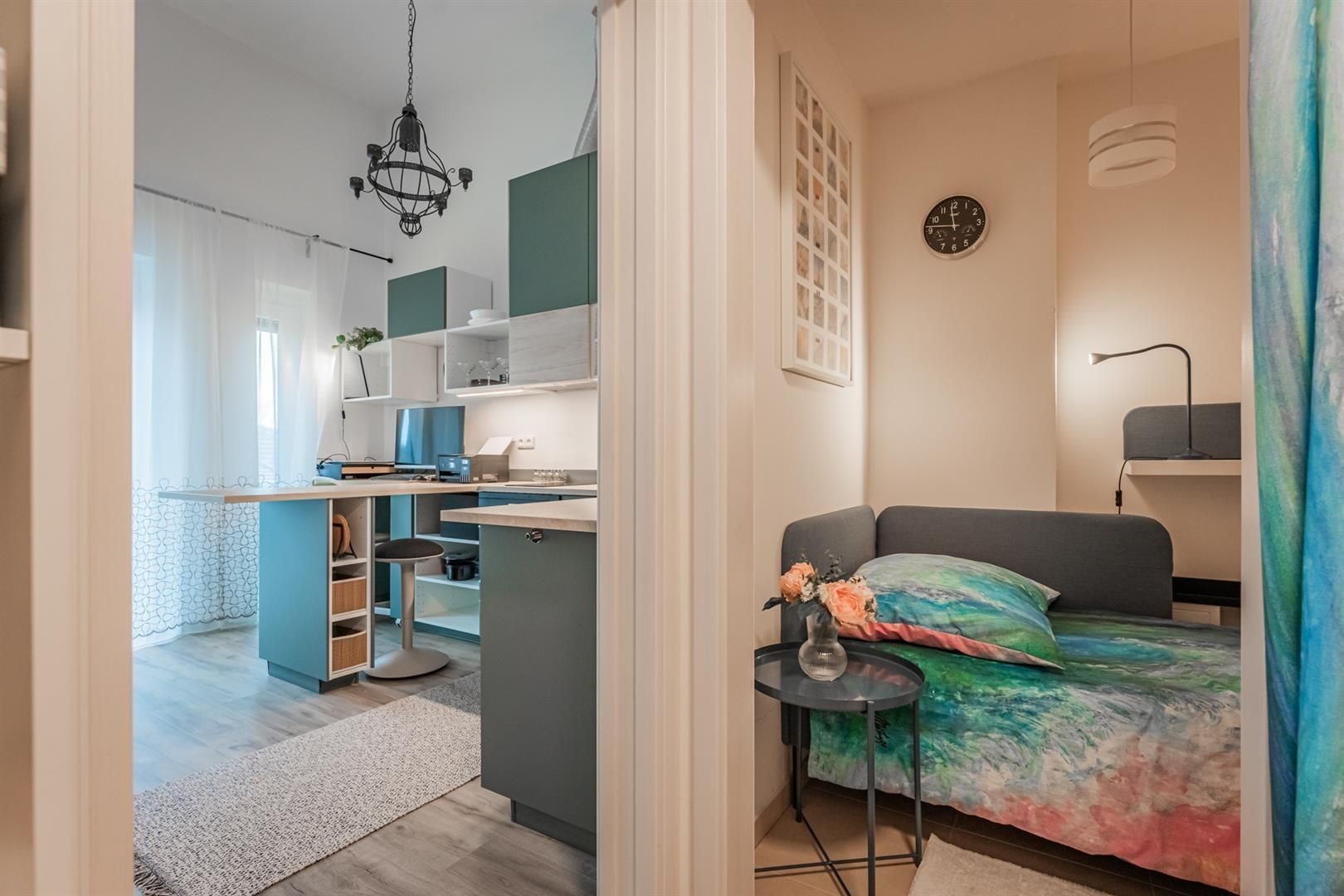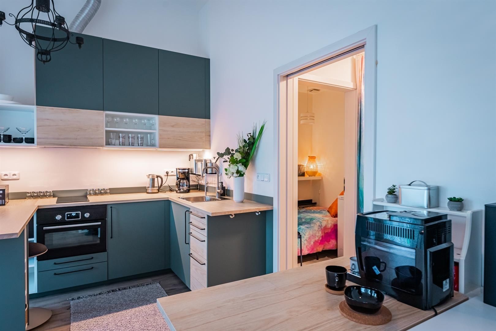 Promyšlená dispozice na 35,2 m² – to je vstupní hala s šatnou (využitelnou jako malá ložnice), koupelna s WC a hlavní obytný prostor s kuchyňským koutem. Moderní kuchyňská linka s indukční deskou, troubou a lednicí je připravená k okamžitému nastěhování. Velkoformátová okna přes celou šířku pokoje, balkon a pracovní kout doplňují celek, ve kterém má všechno svou logiku.