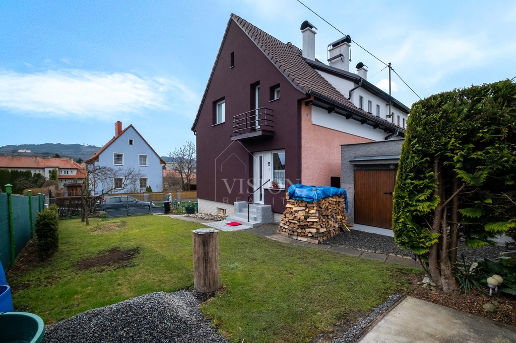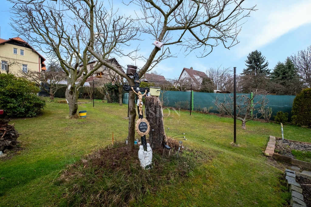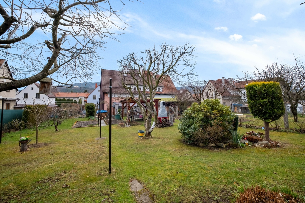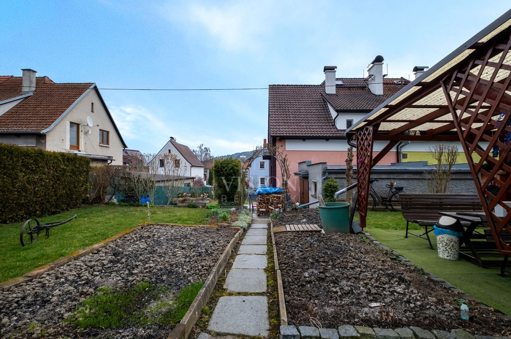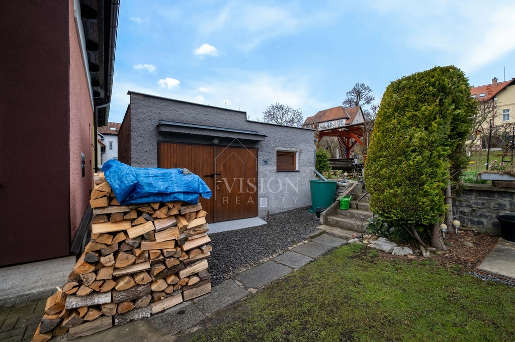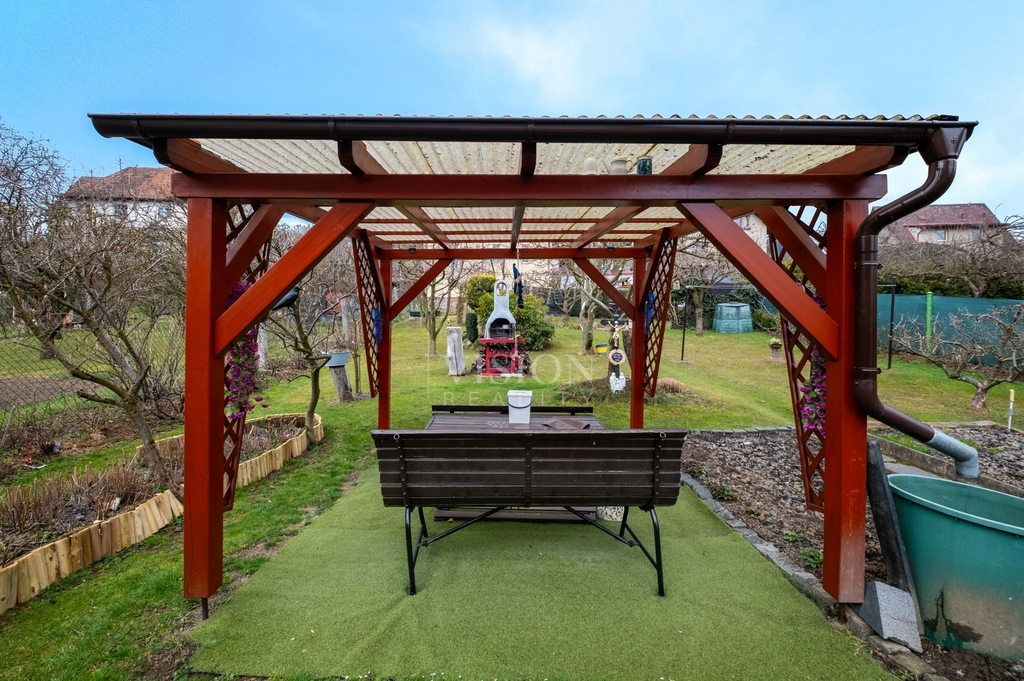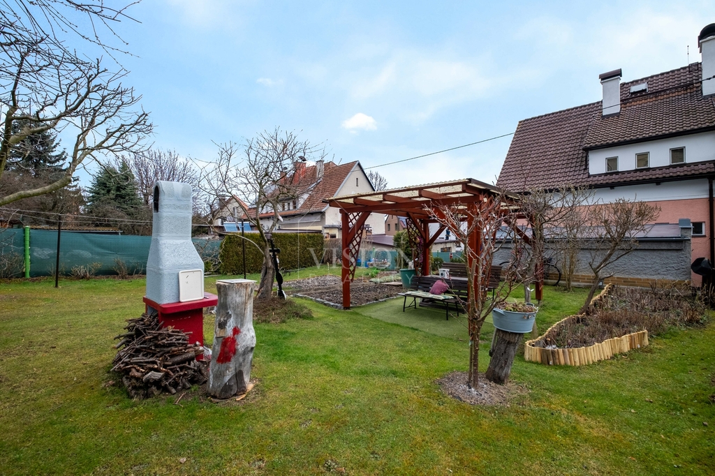 K nemovitosti náleží zahrada o velikosti 680 m², která poskytuje dostatek prostoru pro dětské hry, zahradničení i rodinné posezení. Součástí je také garáž a pergola, ideální pro letní grilování či odpočinek s přáteli.
