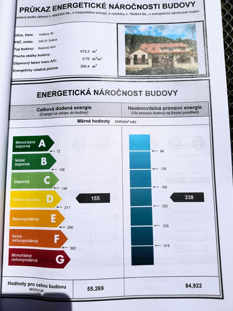 Nabízíme na prodej pěkný prostorný dvougenerační rodinný dům (5+kk s terasou – 188 m2 a bezbariérový 1+kk - 82 m2) po komplexní rekonstrukci (střecha vč. krytiny, fasáda, plastová okna, tepelné čerpadlo nebo zplynovací kotel vč. rozvodů, elektřina, rozvody vody a odpadu v plastu, kuch. linka) s velkou kolnou, sklepem a rozlehlou zahradou 2.916 m2 sahající až k lesu, stojící v obci Volšovy u Sušice 4 km. Nutno vidět velikost domu a pozemku!