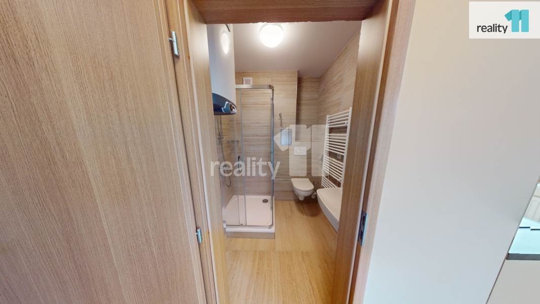 Dispoziční členění této bytové jednotky: chodba, koupelna (WC, sprchový kout, umyvadlo, zrcadlo), kuchyně (nová kuchyňská linka, sklokeramická deska, trouba, digestoř), pokoj a balkón. Výhodou tohoto bytu je, že si ho můžete plně vybavit dle vlastních představ. K parkování je vyhrazené soukromé parkoviště přímo u domu. Pro pohodlný pohyb v rámci budovy můžete využít výtah. Vytápění bytu zajišťuje tepelné čerpadlo.