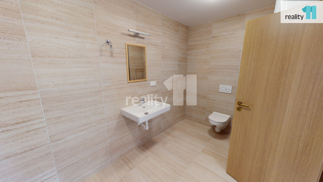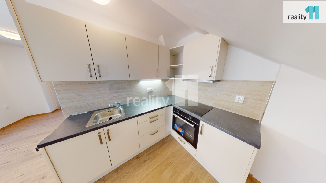 Dispoziční členění této bytové jednotky: chodba (vestavná skříň), koupelna (WC, vana, umyvadlo, zrcadlo), obývací pokoj s kuchyňským koutem (nová kuchyňská linka, sklokeramická deska, trouba, digestoř), ložnice a balkón. Výhodou tohoto bytu je, že si ho můžete plně vybavit dle vlastních představ. K parkování je vyhrazené soukromé parkoviště přímo u domu. Pro pohodlný pohyb v rámci budovy můžete využít výtah. Vytápění bytu zajišťuje tepelné čerpadlo.
