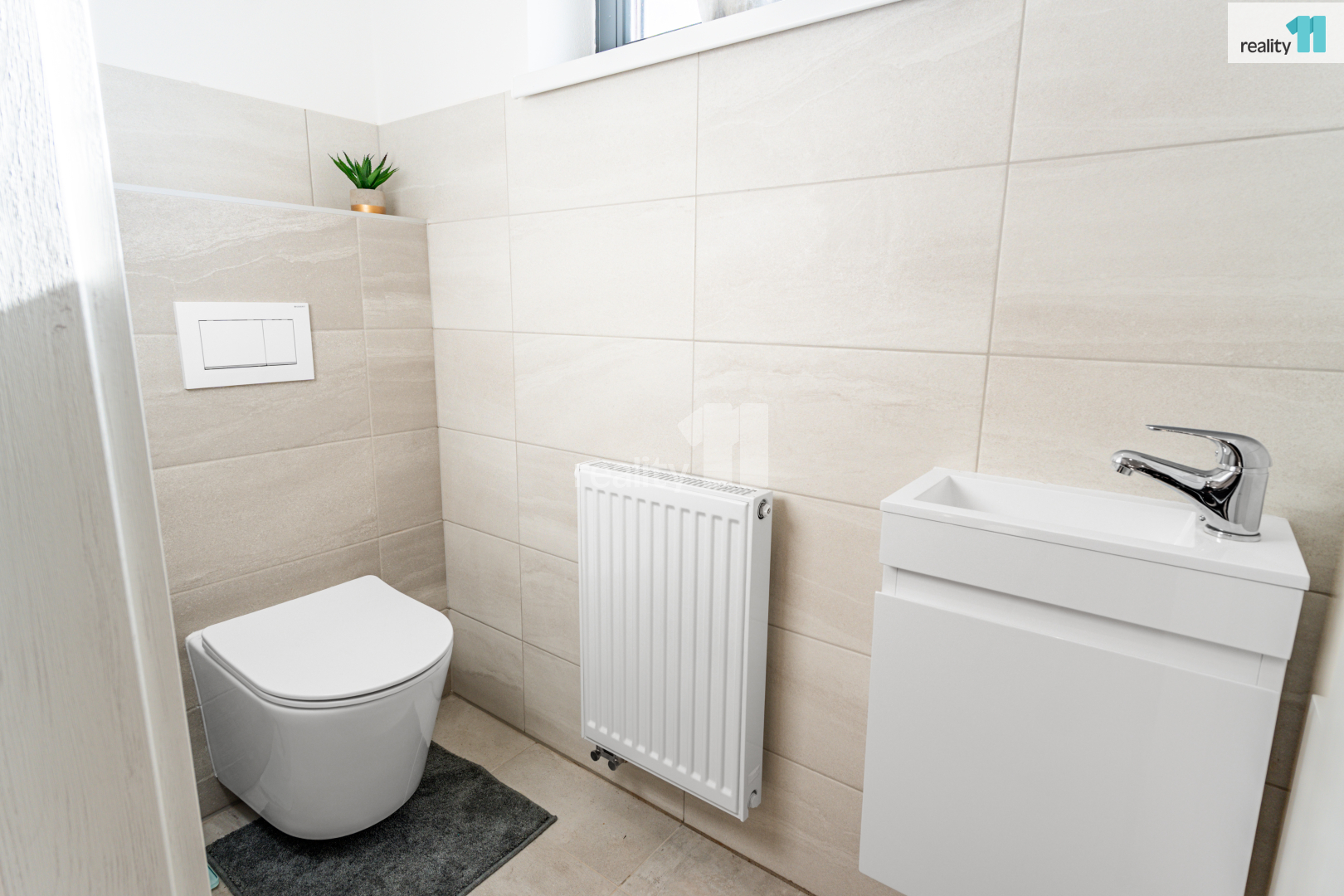 Tento samostatný dům s dispozicí 5+kk nabízí dostatek prostoru pro celou rodinu. Otevřený obývací prostor s kuchyní plynule přechází na terasu orientovanou na jih, kam po celý den proudí světlo. Každý dům je vybaven tepelným čerpadlem a fotovoltaickou elektrárnou, což zajišťuje nízké provozní náklady. Nechybí ani krbová kamna, která jistě oceníte během chladnějších dnů. Součástí je zahrada ideální pro rodinné chvíle i relax, nechybí ani možnost bezproblémového parkování v garáži, která je součástí domu.