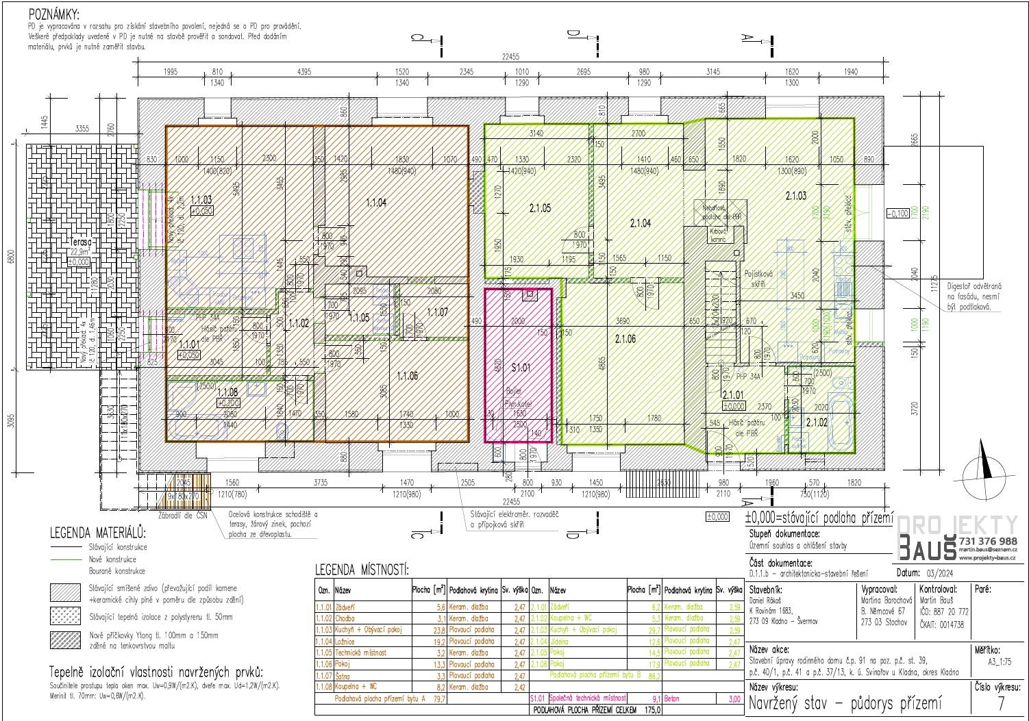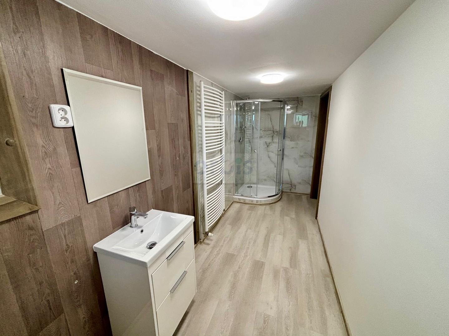 Nabízíme k prodeji nový byt 5+kk/T se zahradou 313 m2, v klidné části obce Svinařov, v nově revitalizované uzavřené lokalitě, vjezd dálkově ovládanými společnými vraty (aktuálně probíhají v lokalitě stavební práce). Byt se nachází v pravé části rodinného, kompletně revitalizovaného domu se třemi byty - zateplení, nová fasáda, střecha, komíny, rozvody. V přízemí bytu, které má čistě obytnou plochu 86,2 m2 nalezneme vstupní chodbu, koupelnu s WC, obývací pokoj s kuchyňským koutem, komorou a terasou (17,5 m2), dále pak jídelnu a další dva pokoje. V prvním patře se nachází prostory s klimatizací a úložnými vestavěnými prostory, o obytné ploše 46,6 m2 skládající se z velkého pokoje s vysokými stropy a vestavěnou konstrukcí pro lůžkovou část a dále koupelna s WC a sprchovým koutem. Prostor v patře by bylo možno využívat i jako druhou bytovou jednotku. V sekci fotografiích jsou předmětný byt i zahrada označeny zelenou barvou.