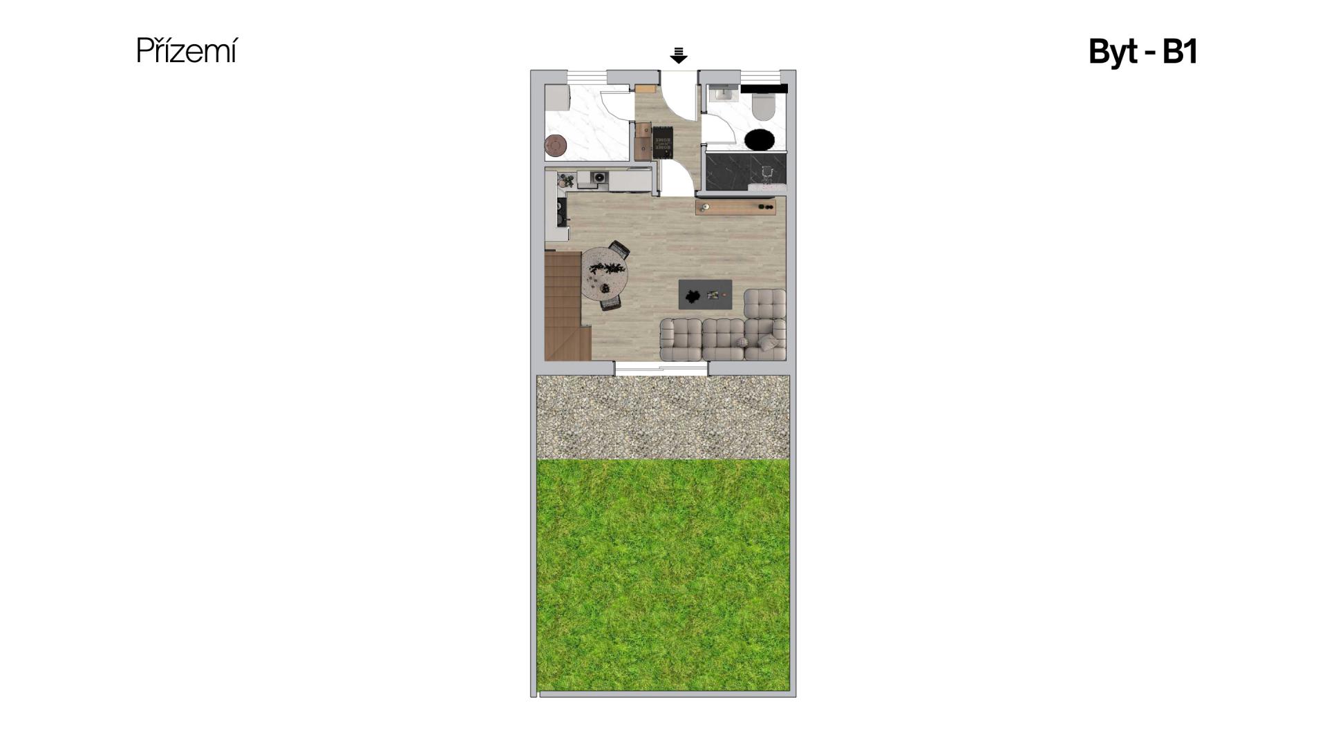 Mezonetový byt 2+kk s předzahrádkou a parkováním v klidné části Svitav