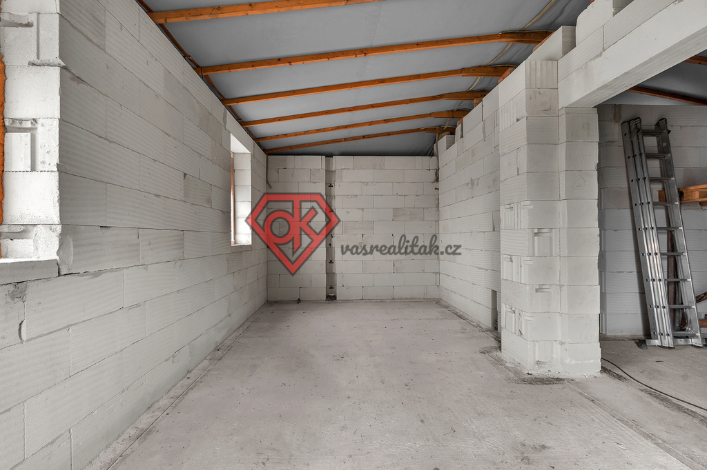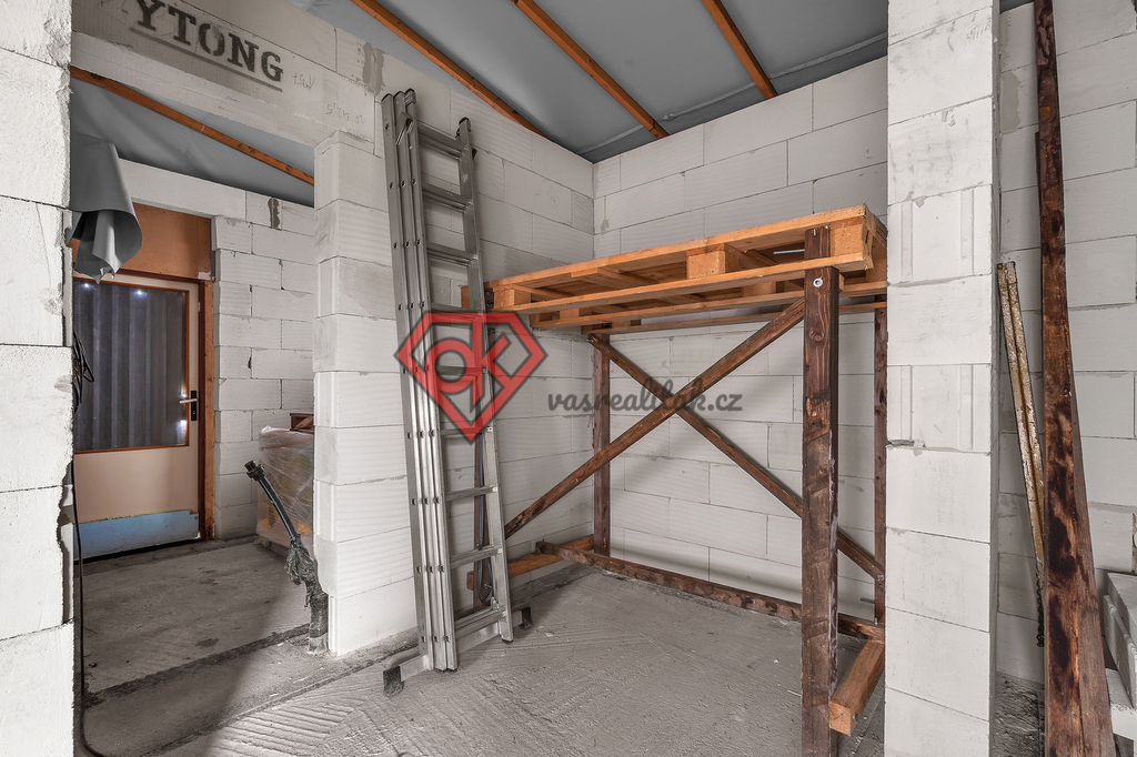 Součástí prodeje je také rozestavěná stavba, která je navržena jako rodinný dům: