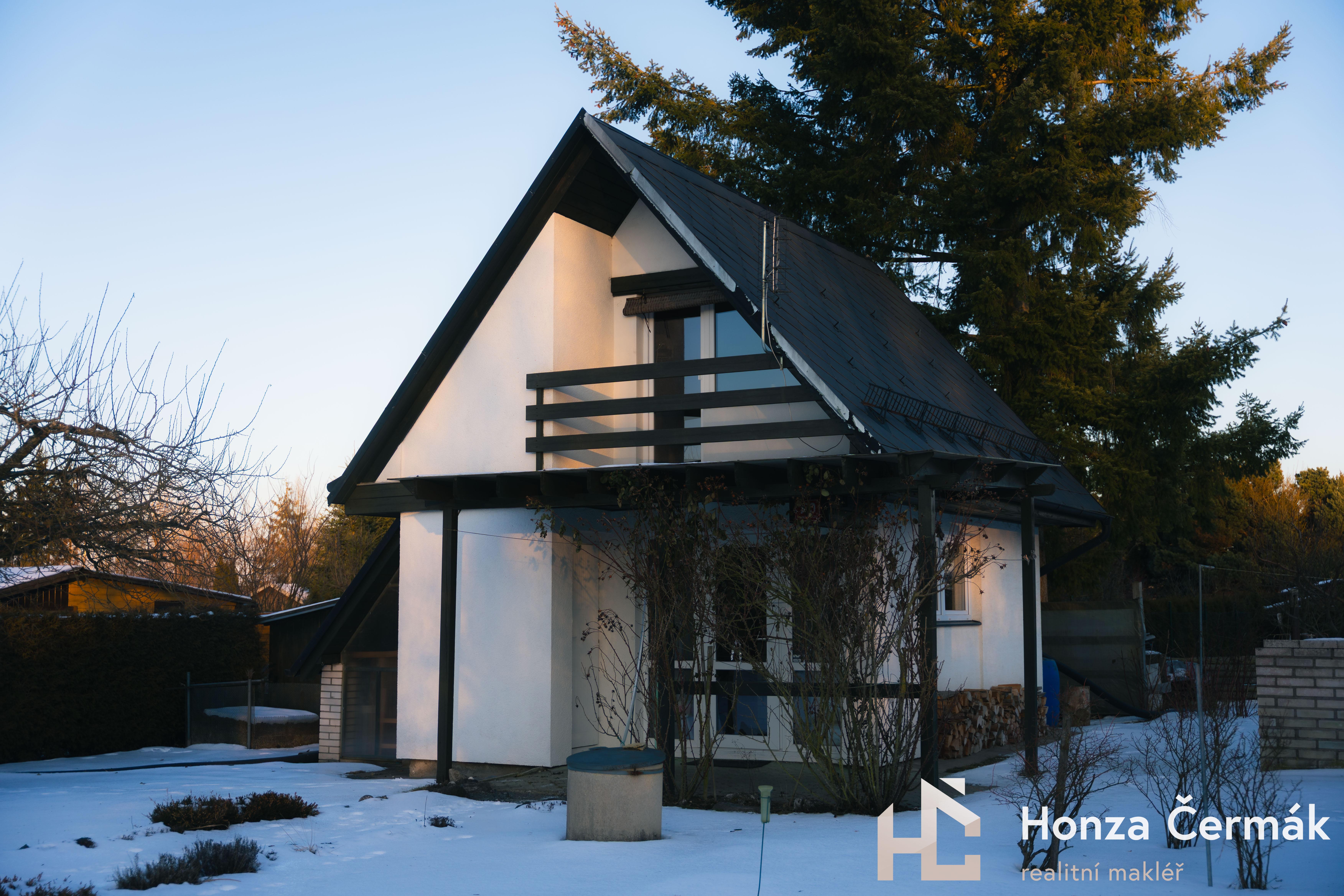 Samotná chata byla postavena v roce 2000 a jedná se o poctivou stavbu. Základy jsou betonové s izolací, svislé konstrukce z děrovaných pálených cihel a stropy jsou trámové. V roce 2005 proběhla výměna oken za plastová dvojskla. V přízemí o výměře 19,35 m² se nachází hlavní obytná část s kuchyňským koutem a posezením. Atmosféru tu dotváří krbová kamna, která prostor spolehlivě vytopí a zpříjemní chladnější večery. Z obývací části se po schodech dostanete do podkroví, kde je spací část o ploše 16 m² a malá šatna. To nejkrásnější na patře je ale balkon. Je to ideální místo, kde si můžete sednout a pozorovat nádherné západy slunce nad okolní krajinou.