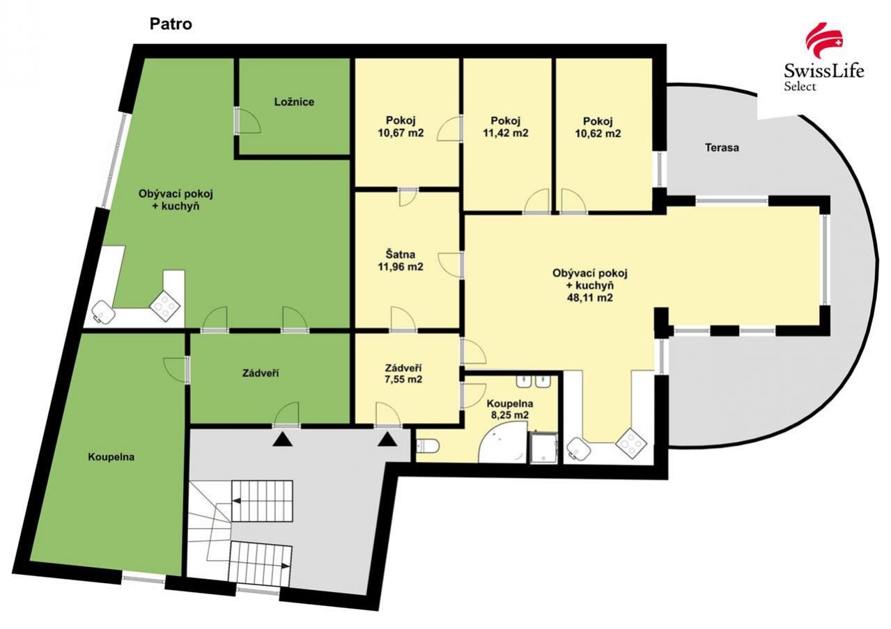 V 1. patře jsou další dvě bytové jednotky: