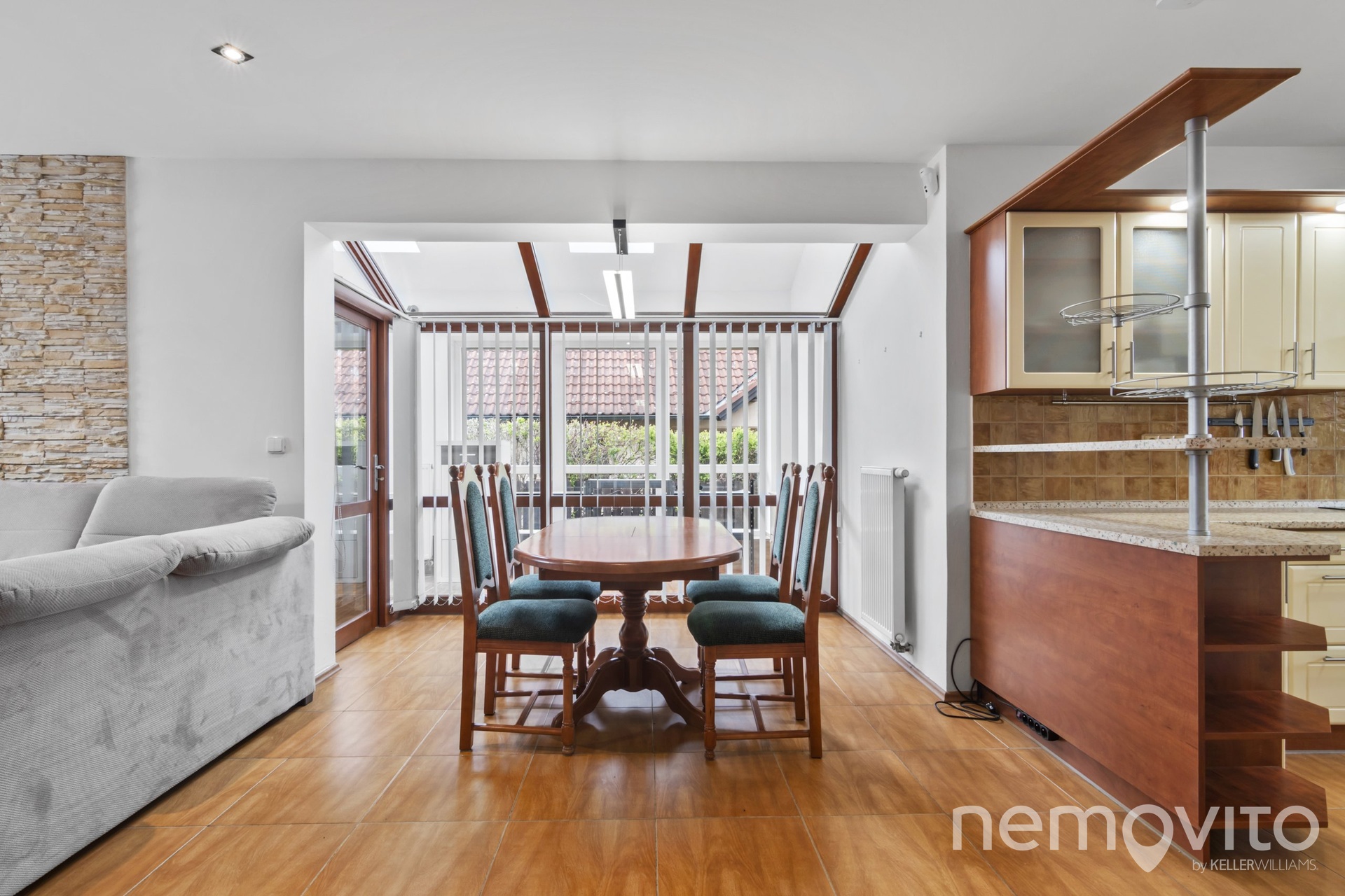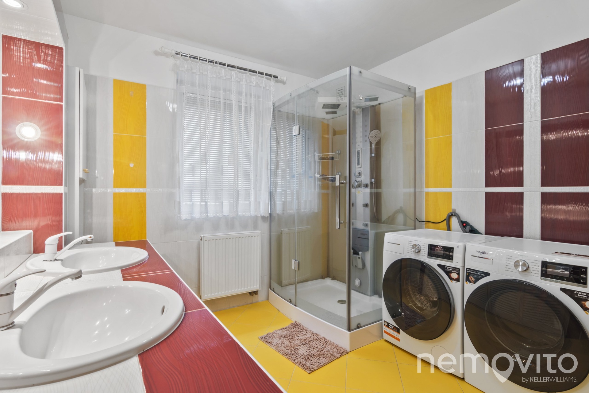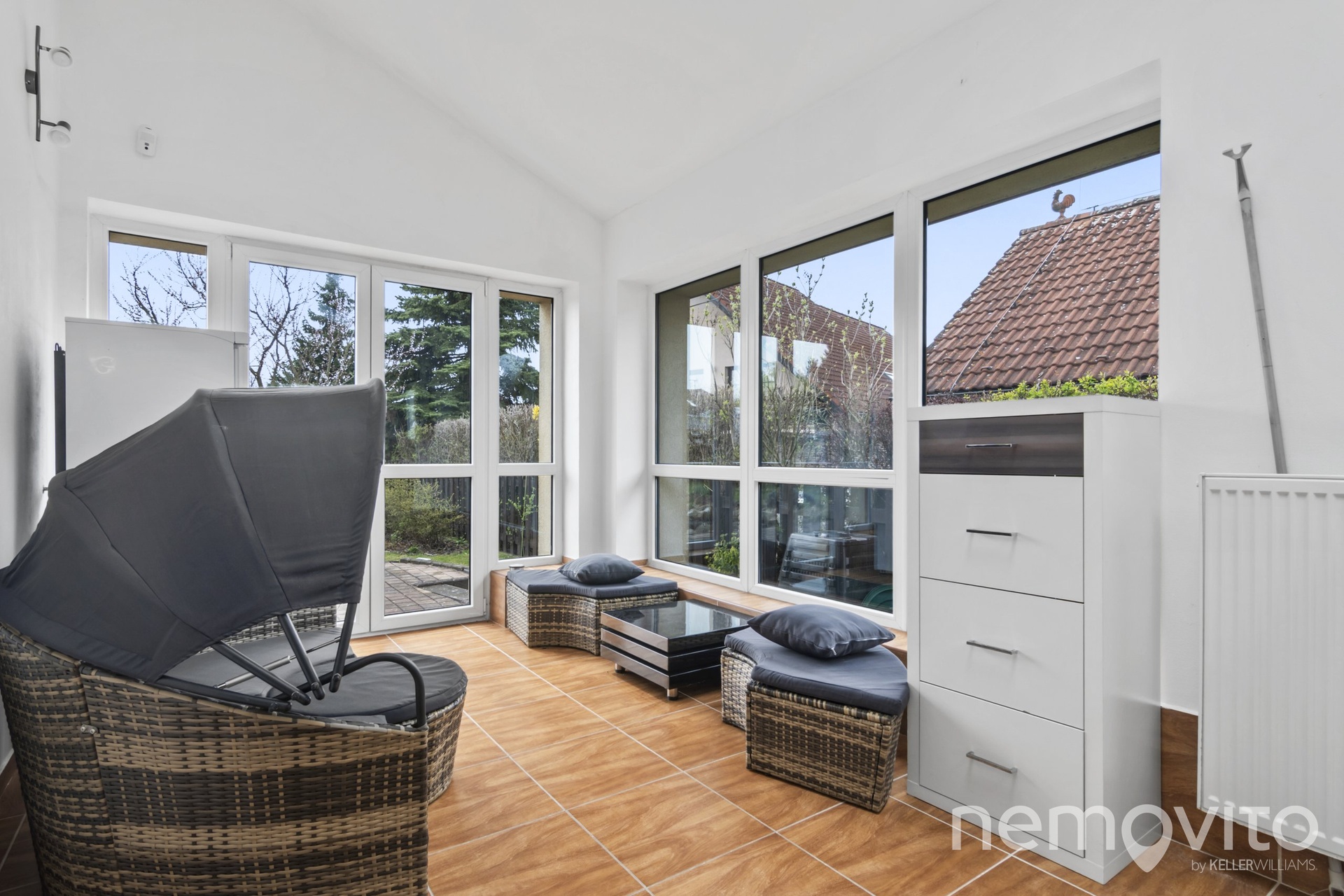 Dispozice 5+kk nabízí praktické rozložení prostoru pro rodinné bydlení. V přízemí se nachází vstupní hala, samostatná toaleta, šatna, koupelna se sprchovým koutem, ložnice, technická místnost a hlavní obytný prostor s obývacím pokojem, jídelnou a kuchyní se špajzem. Součástí je také prostorná prosklená zimní zahrada.