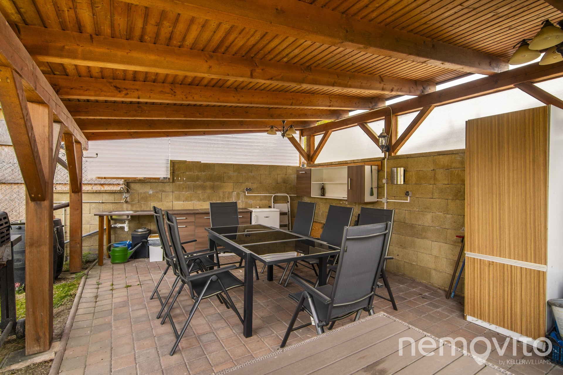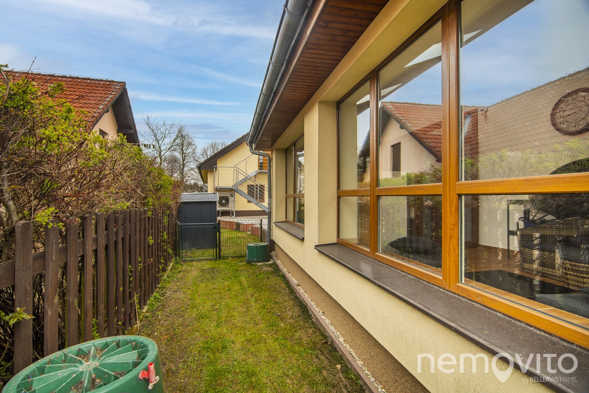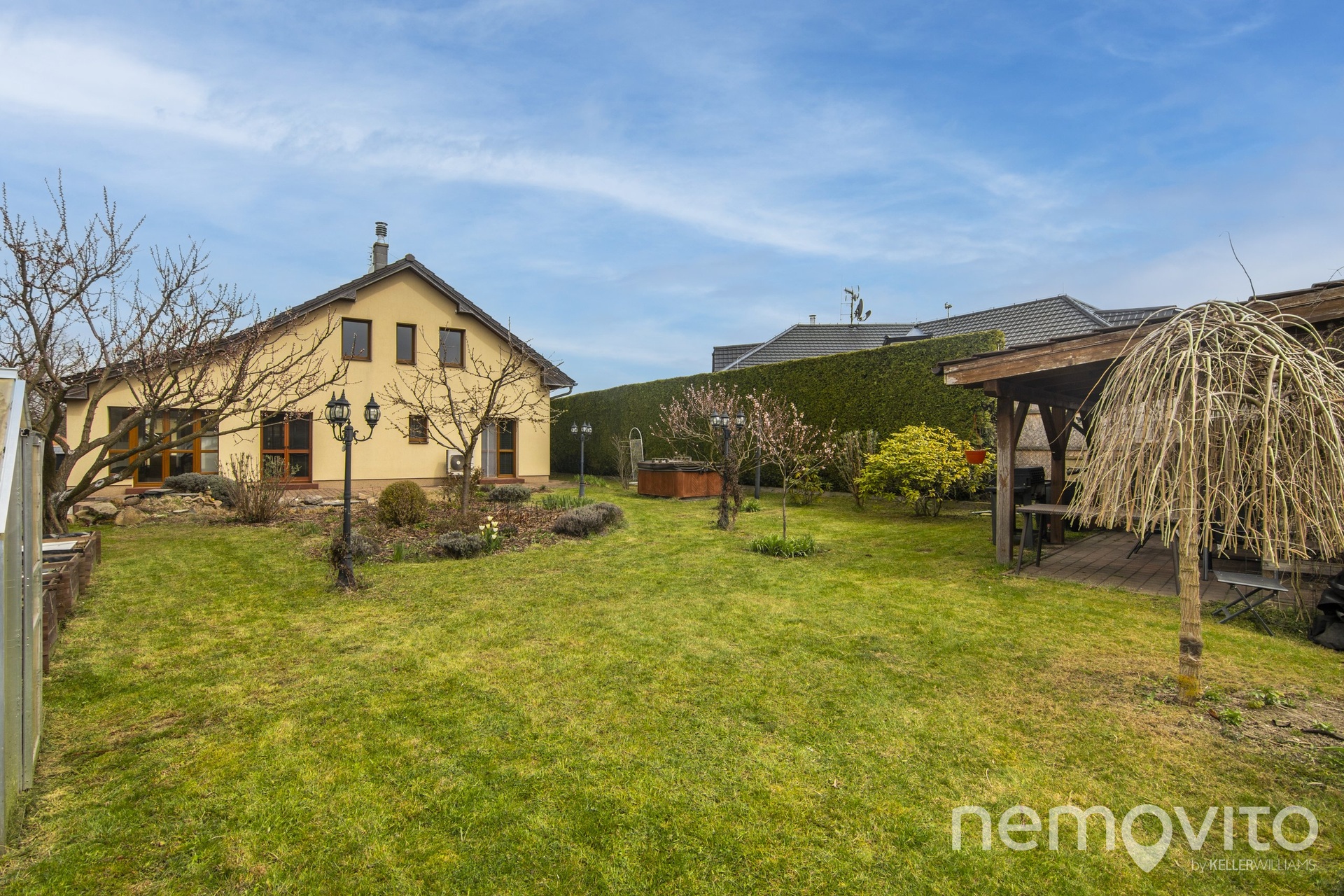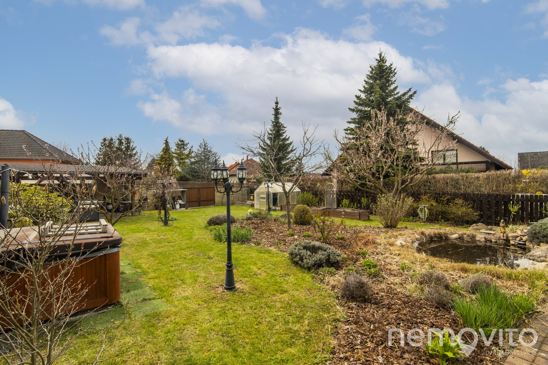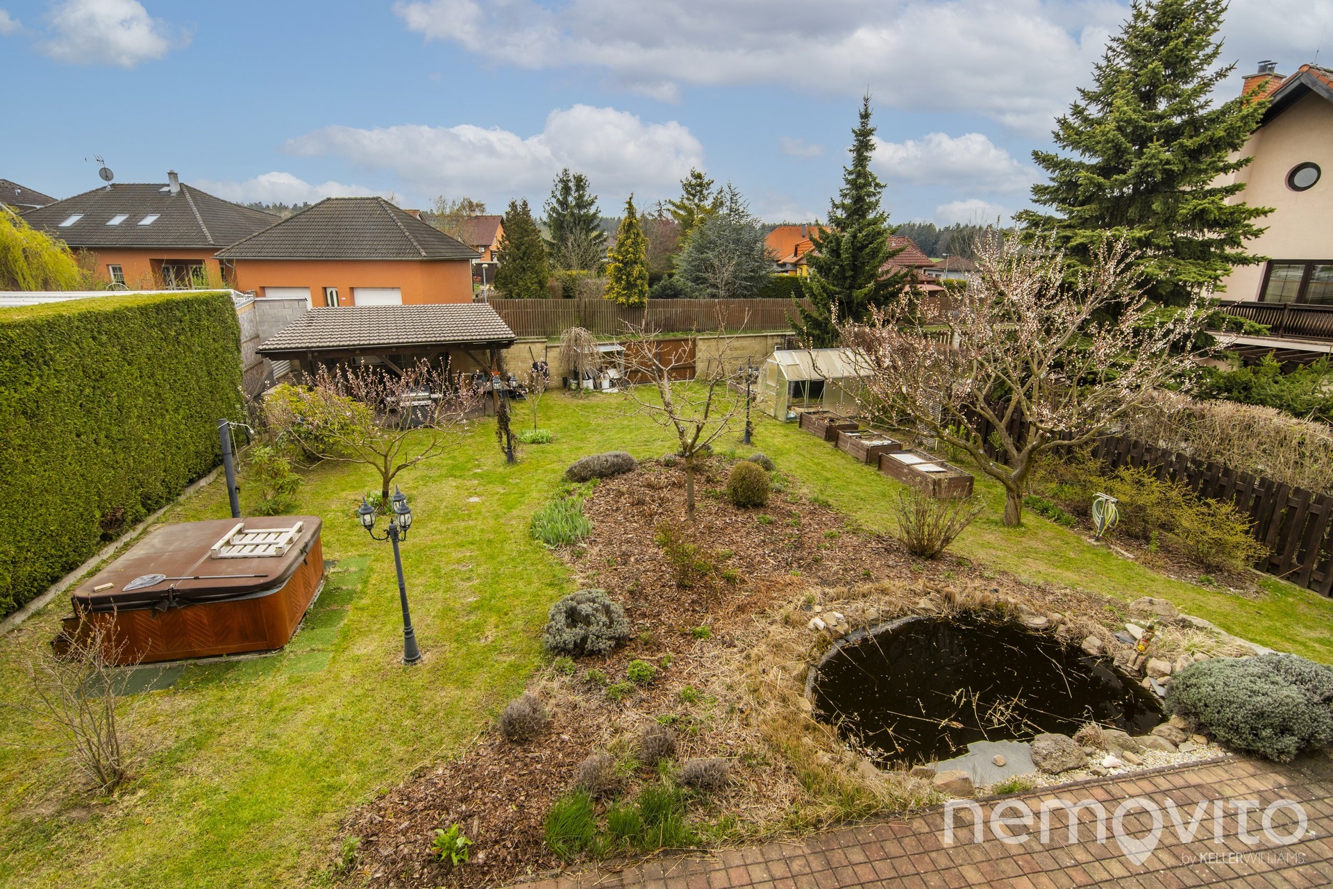 Pozemek o celkové výměře 1 010 m² nabízí dostatek soukromí i prostoru pro relax. Vjezd na pozemek je zajištěn posuvnou bránou na dálkové ovládání. Zahrada je pečlivě upravená, s okrasnými prvky, jezírkem, ovocnými stromy, skleníkem a venkovní vířivkou. K dispozici je terasa a kryté posezení pod pergolou. Zavlažování lze řešit vodou z vlastní vrtané studny.