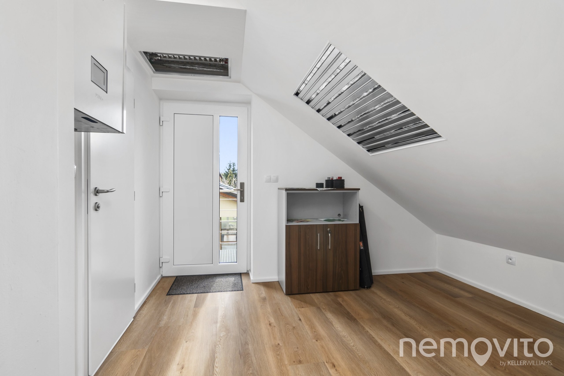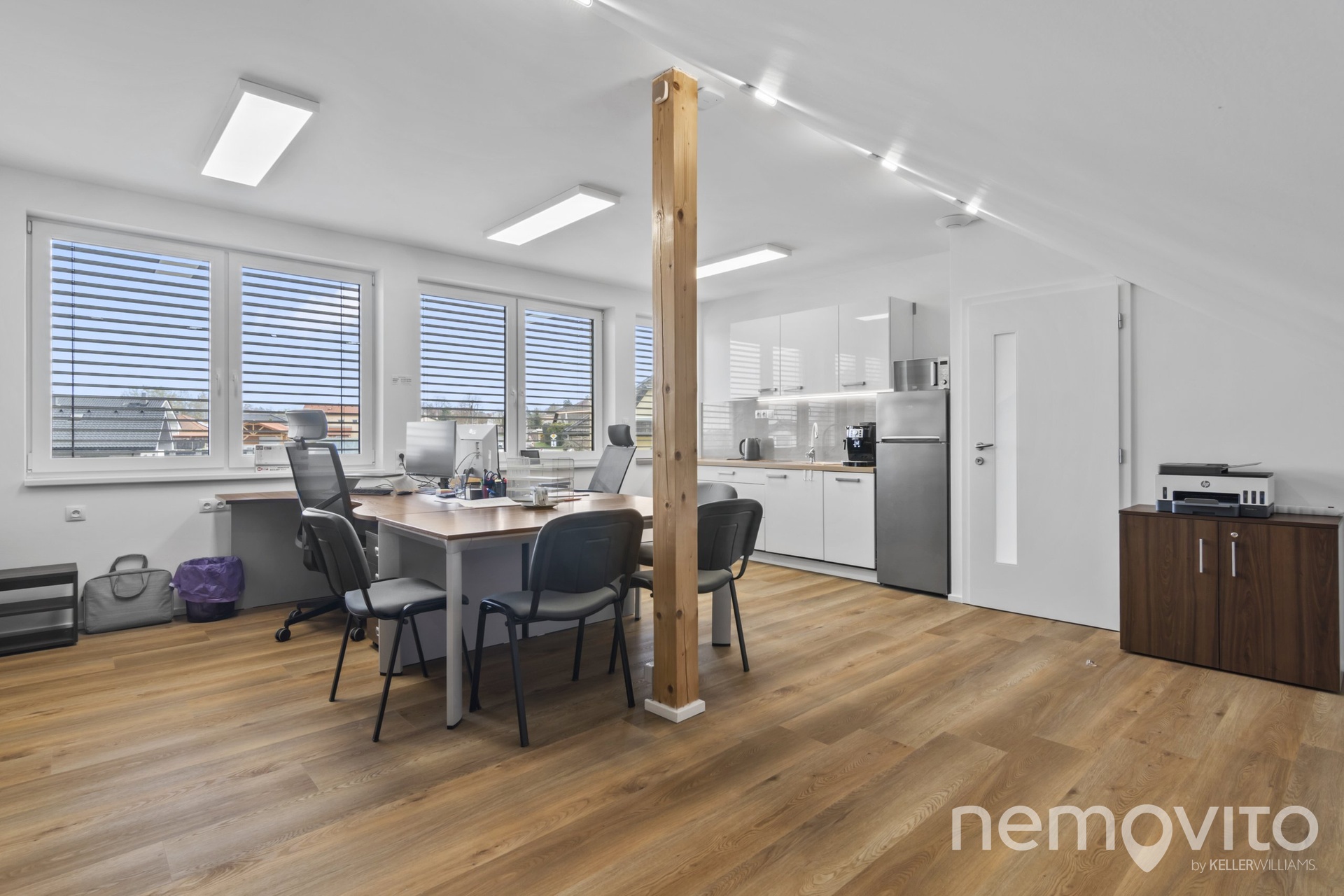 V horním patře se nachází jednotka o velikosti cca 80 m² s dispozicí 2+kk, která je aktuálně využívána jako kancelář, ale je plně připravena i pro bydlení. Jednotka disponuje vlastním vstupem po venkovním schodišti.