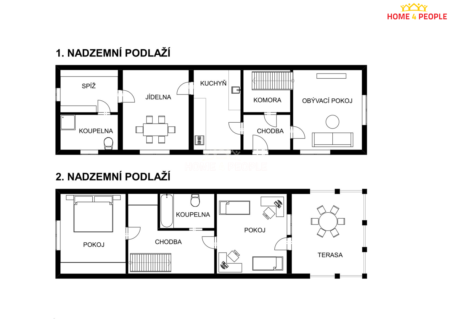 Tato nemovitost Vám nabízí obývací pokoj, jídelnu, samostatnou kuchyni, ložnici, dětský pokoj, komoru, špíz a dvě koupelny s toaletou. Součástí domu je také terasa a otevřený, zastřešený venkovní prostor k posezení.
