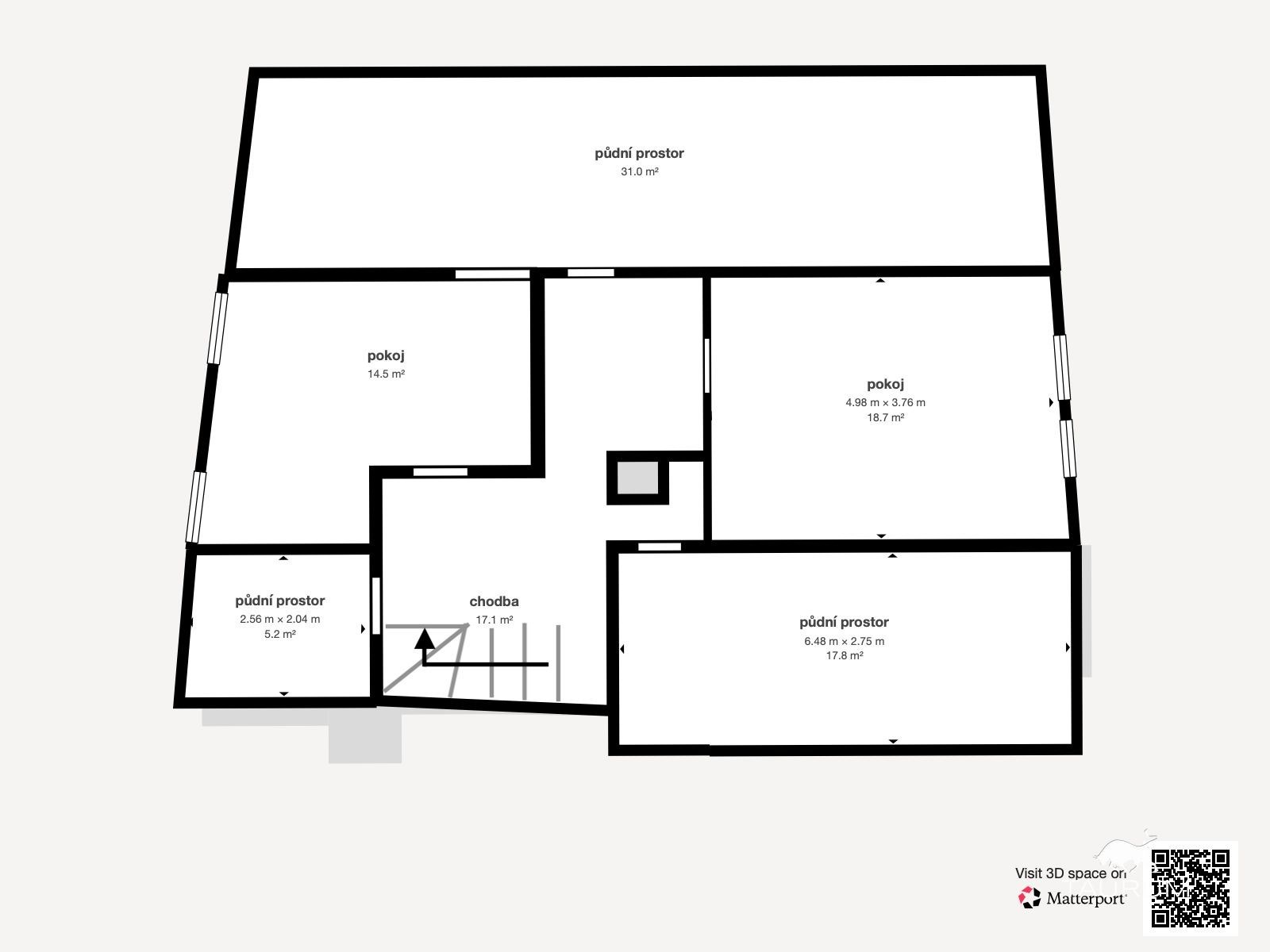 Podkroví o výměře 32 m² pak nabízí dva pokoje a další prostory pro rozšíření obytné části.