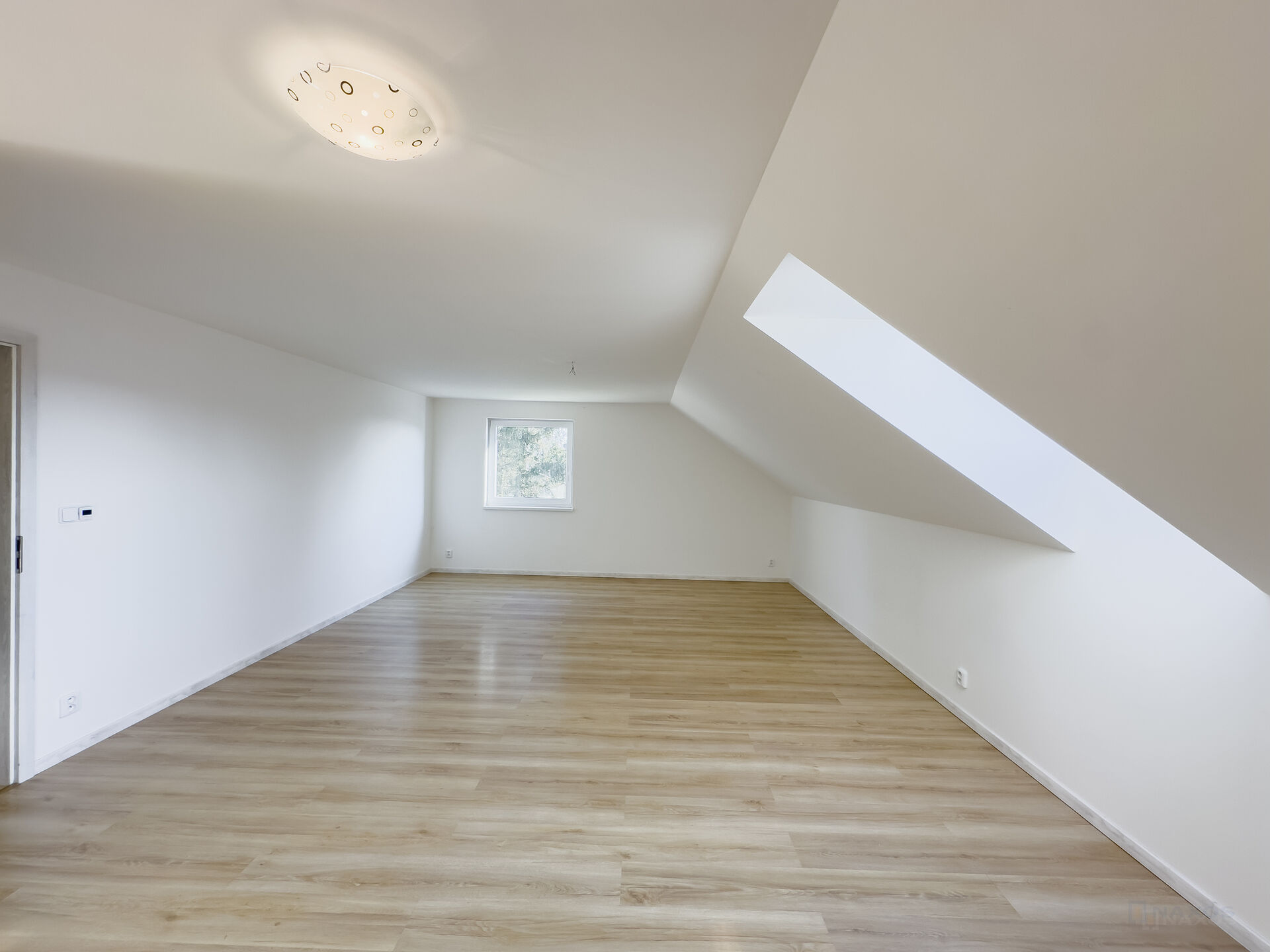 Interiér domu je promyšleně řešený s důrazem na praktičnost a pohodlí. Dominantou je prostorný obývací pokoj s jídelnou a kuchyní s přímým vstupem na terasu. Čtyři samostatné ložnice zajišťují dostatek soukromí pro všechny členy rodiny. Dům disponuje dvěma prostornými koupelnami. Technická místnost a půdní prostor s možností další vestavby rozšiřují užitné možnosti nemovitosti. Střešní okna v celém domě zajišťují příjemné denní osvětlení všech prostor.