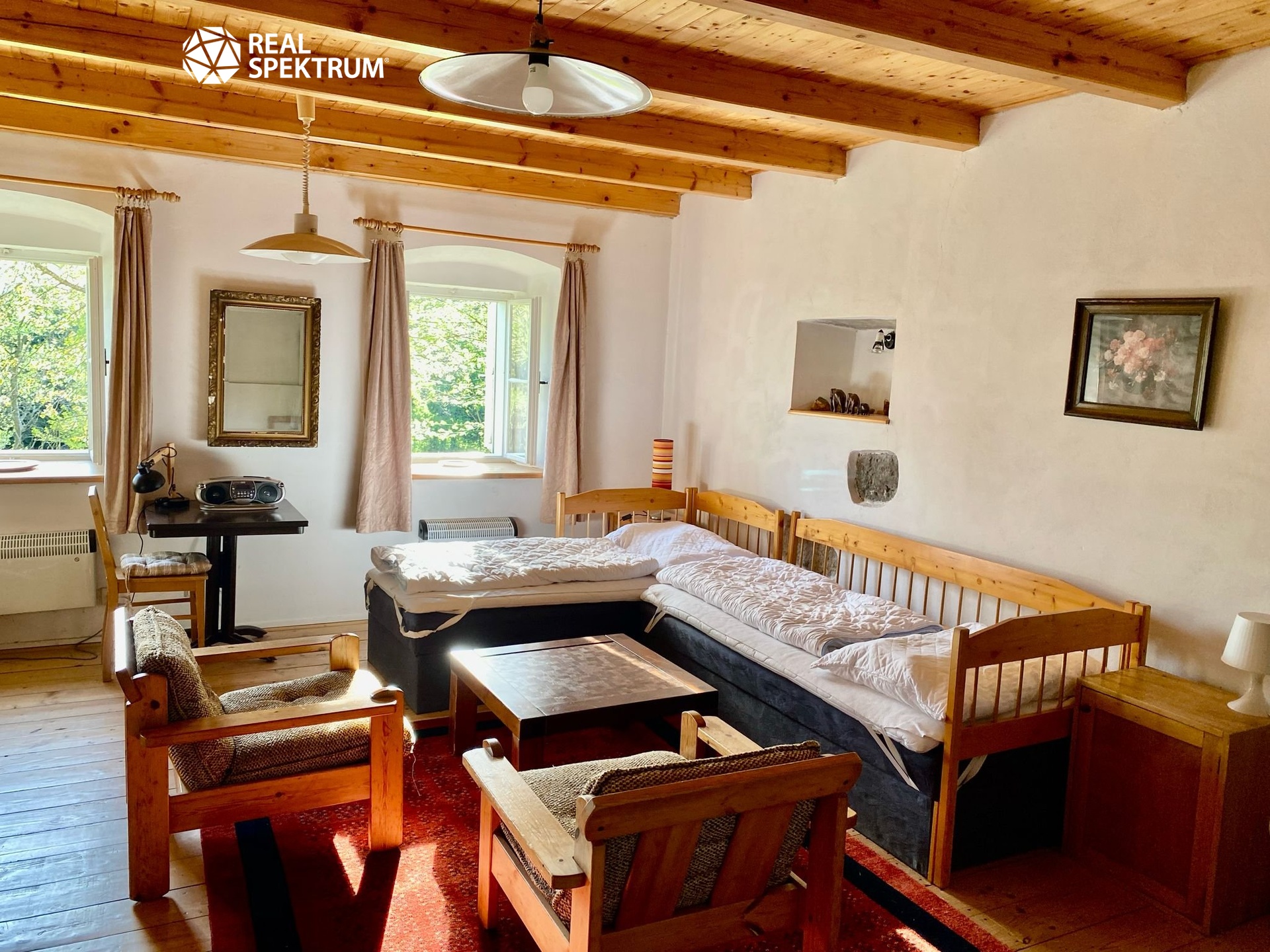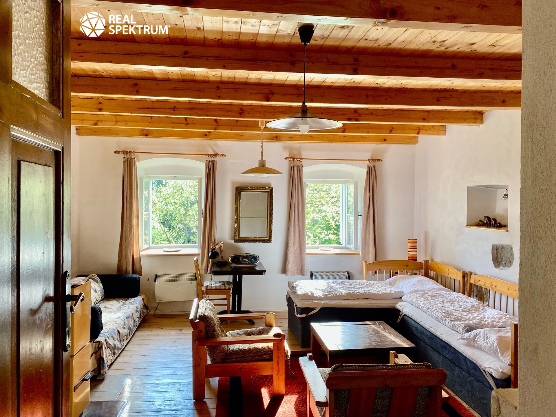 Nemovitost je přízemní selské stavení ve tvaru „U“, Z prostorné chodby je přístup do kuchyně, velké jizby – obývacího pokoje s krbovými kamny, ložnice č. 1, ložnice č. 2 a dvou koupelen, po schodech se dostane do podkroví, kde je ložnice č. 3 a půdní prostory skýtající možnost rozšíření - vestavby. Dále se z chodby dostanete na vnitřní dvorek o výměře cca 5x5m a také do stodoly a technické místnosti.