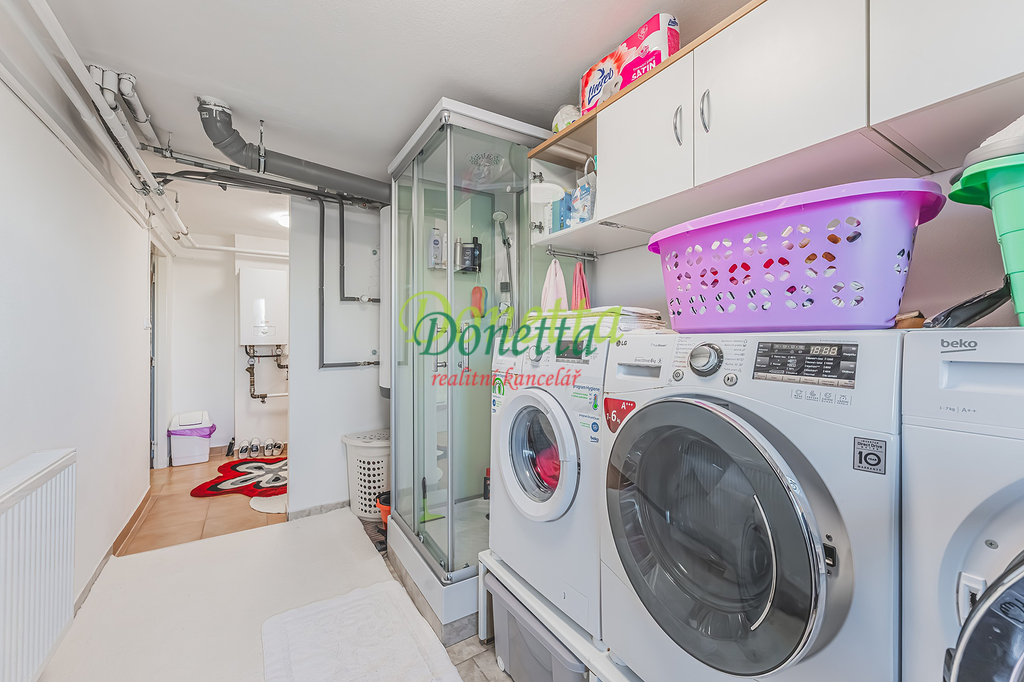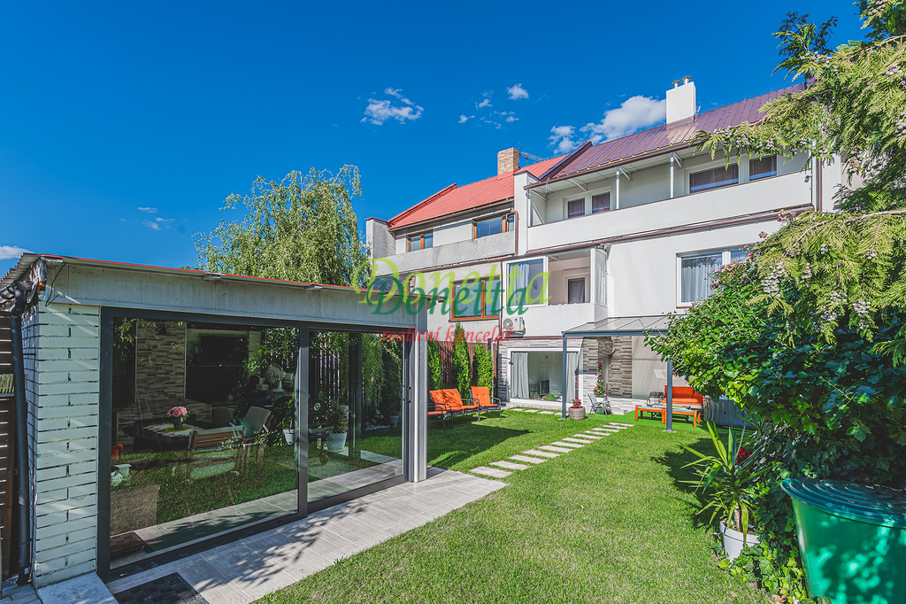 Exkluzivně nabízíme prodej krásného a kompletně zrekonstruovaného rodinného domu v obci Syrovátka, vzdáleného 10 km od Hradce Králové. Řadový rodinný dům se nachází na pozemku o celkové výměře cca 406 m2 a nabízí velké množství užitného a obytného prostoru. Dispozice sníženého přízemí: prádelna se sprchovým koutem a toaletou, kotelna, sklep, dílna, pokoj, garáž pro osobní automobil a zimní zahrada, ze které je vstup na terasu a do zahrady. Ve zvýšeném přízemí je vstupní zádveří, schodiště, chodba, prostorný a velmi světlý obývací pokoj (22,31 m2), kuchyně s kuchyňskou linkou se spotřebiči, která volně přechází v jídelnu (24,96 m2), prosklená terasa s výhledem do zahrady, pracovna a koupelna se sprchovým koutem, umyvadlem a toaletou. Z části kuchyně je vstup na balkon. V tomto podlaží je umístěna klimatizační jednotka. Ve II. NP je chodba, samostatná toaleta, koupelna s vanou a umyvadlem, a tři samostatné a neprůchozí pokoje (18 m2, 16 m2 a 11,7 m2). Jeden z pokojů má vstup na samostatný balkon, zbylé dva pokoje mají společný balkon do zahrady (9,38 m2). Všechny balkony a terasy jsou zastřešeny, takže je možné využívat i za deštivých dnů. Nad II. NP je v celém půdorysu domu volný půdní prostor k uložení věcí či dobudování dalších obytných místností. Rodinný dům nabízí opravdu velkorysé vnitřní prostory s užitnou plochou téměř 240 m2. Vše je zde navrženo a zařízeno s důrazem na co možná nejkomfortnější a nejjednodušší užívání celého domu. Udržovaná, západně orientovaní, a velice příjemná zahrada nabízí dostatek prostoru k odpočinku či dětským aktivitám. Najdeme zde pergolu s vířivkou, samostatný, celkově uzavíratelný, zahradní přístřešek s krbem k pořádání rodinných oslav a posezením a kůlnu k uložení zahradního nářadí. Převážná část zahrady je zatravněna, v zadní části je užitná zahrada se záhony a možností pěstování vlastní zeleniny a plodin. V obci částečná občanská vybavenost. Výborná dostupnost do Hradce Králové a na dálnici D11 (nájezd ve vzdálenosti 3 km). Pro bližší informace či domluvení termínu prohlídky kontaktujte realitního makléře. Vše vážné zájemce srdečně zvu na prohlídku.