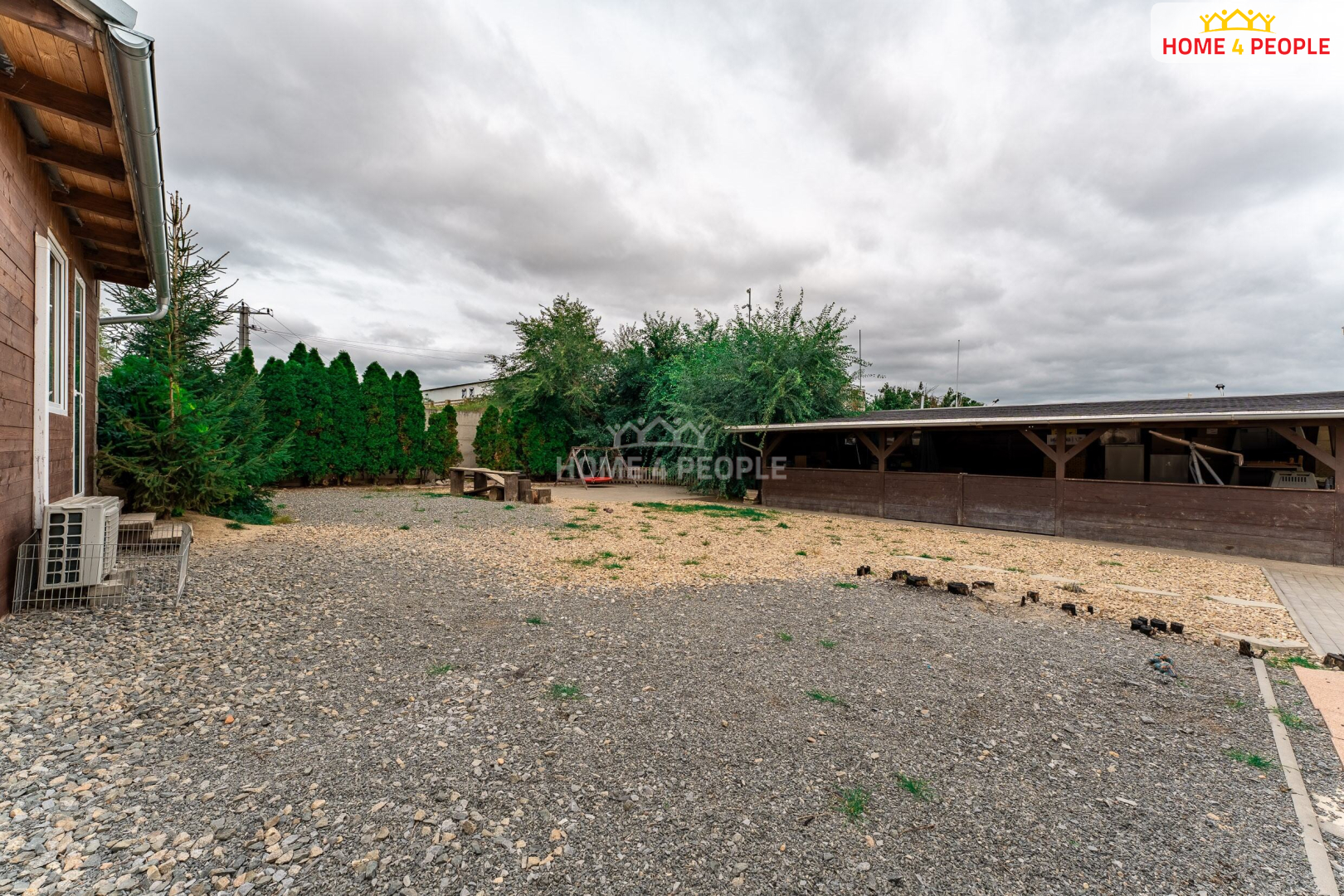 Rohový dům je vystavěn do tvaru písmene U, má vlastní boční vjezd bránou na rozsáhlý pozemek kde na zadní části pozemku je možná dostavba nebytového objektu, dvojgaráže, dílny pro podnikání v dostatečné vzdálenosti od obytného prostoru domu.
