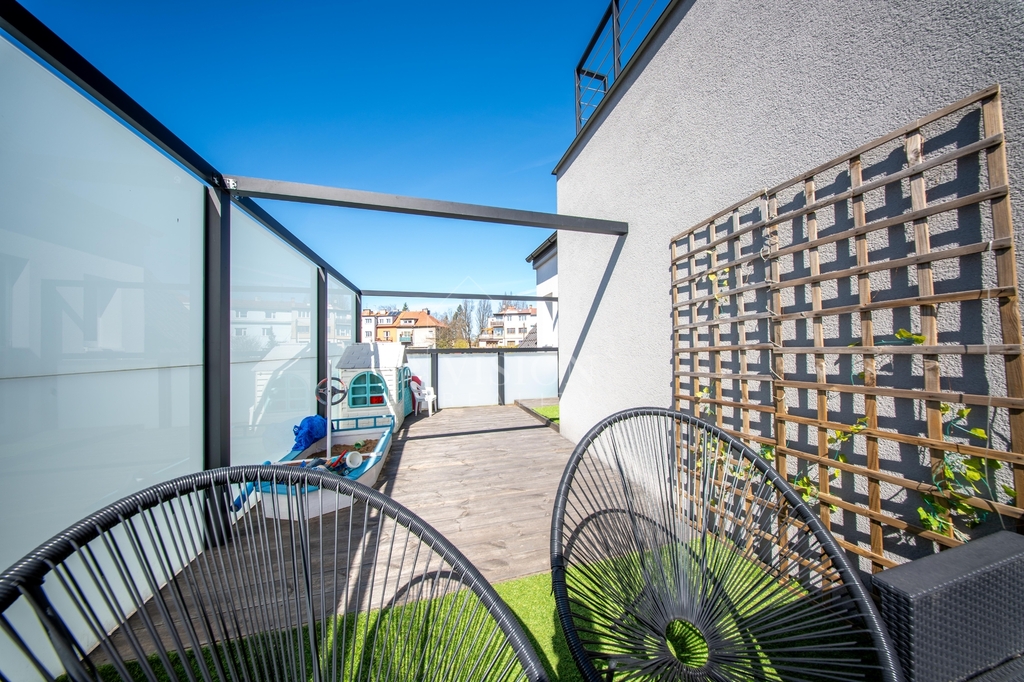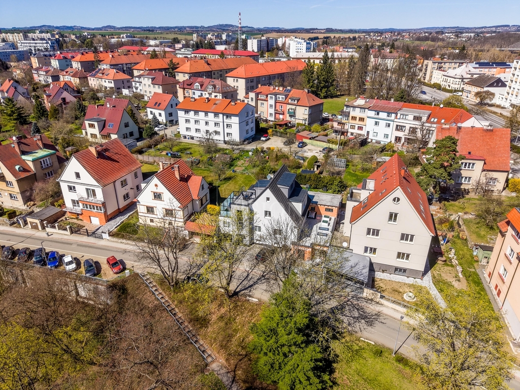 Nabízíme k prodeji byt 3+1 s prostornou terasou a vlastním parkovacím místem, situovaný na adrese Bezručova. Byt o podlahové ploše 95 m² se nachází ve zděném domě pouze se třemi bytovými jednotkami, což zajišťuje klidné a komorní bydlení s nadstandardním soukromím. Velkou předností je terasa o výměře 25 m² s výhledem na historickou část města, ideální pro odpočinek i posezení s rodinou či přáteli.